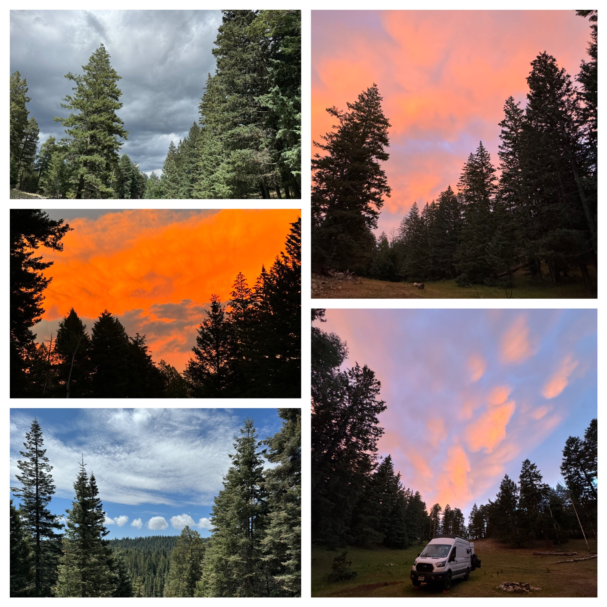 Here are some more cool clouds— all of these photos were taken from camp except for the one on the lower left that was taken on a hike — I just had to include that one because I absolutely loved the little cotton ball clouds above the horizon.