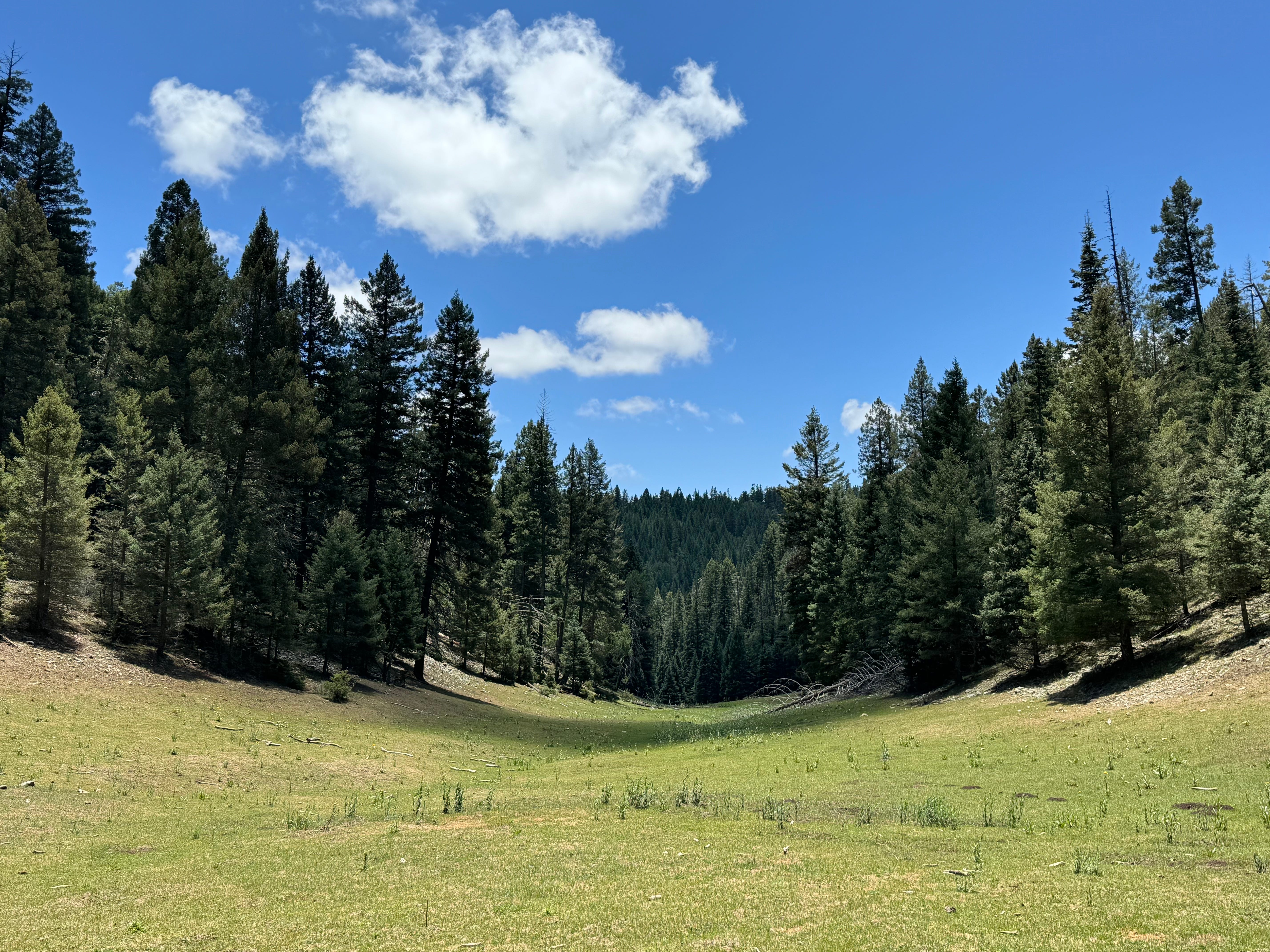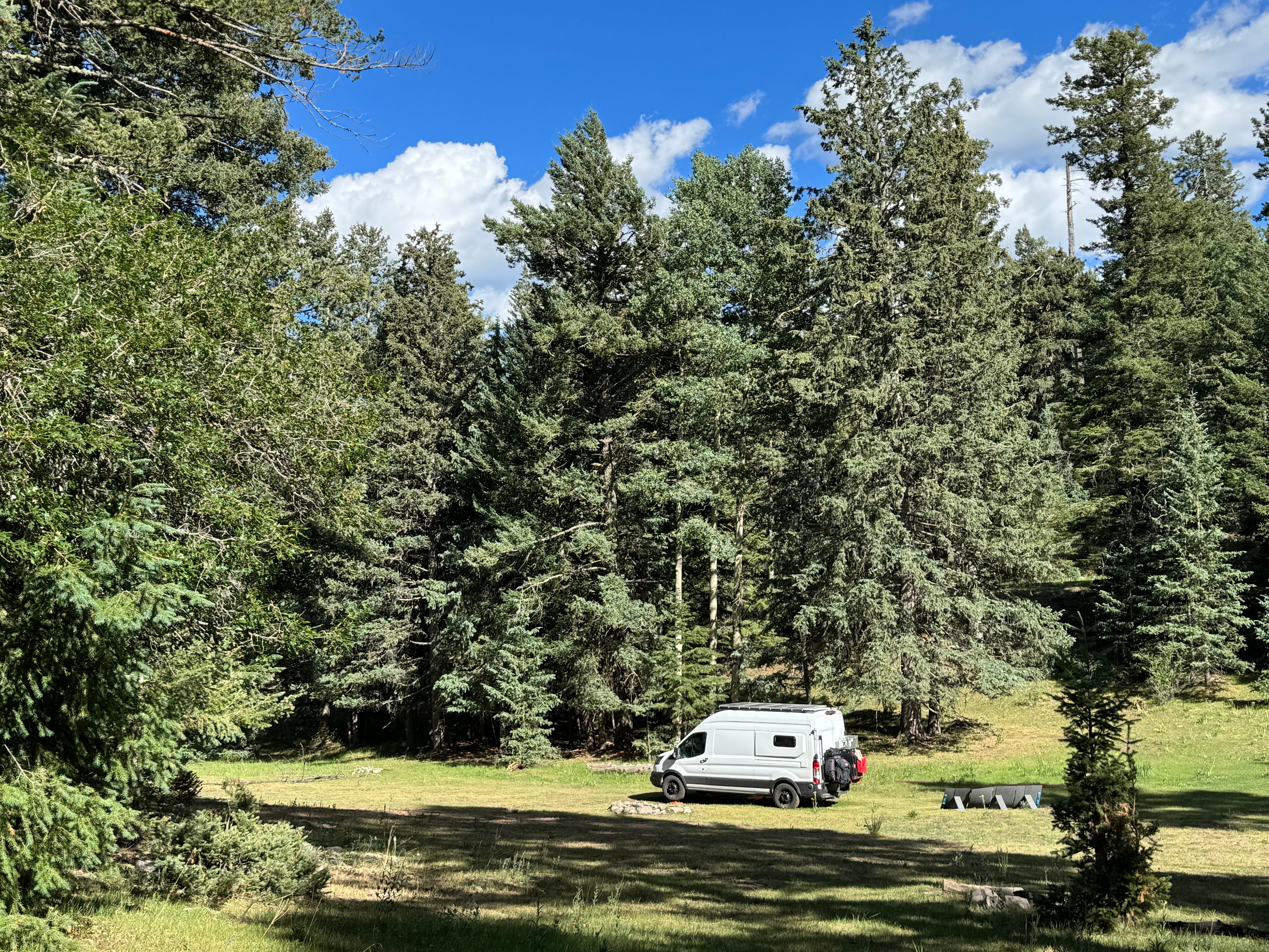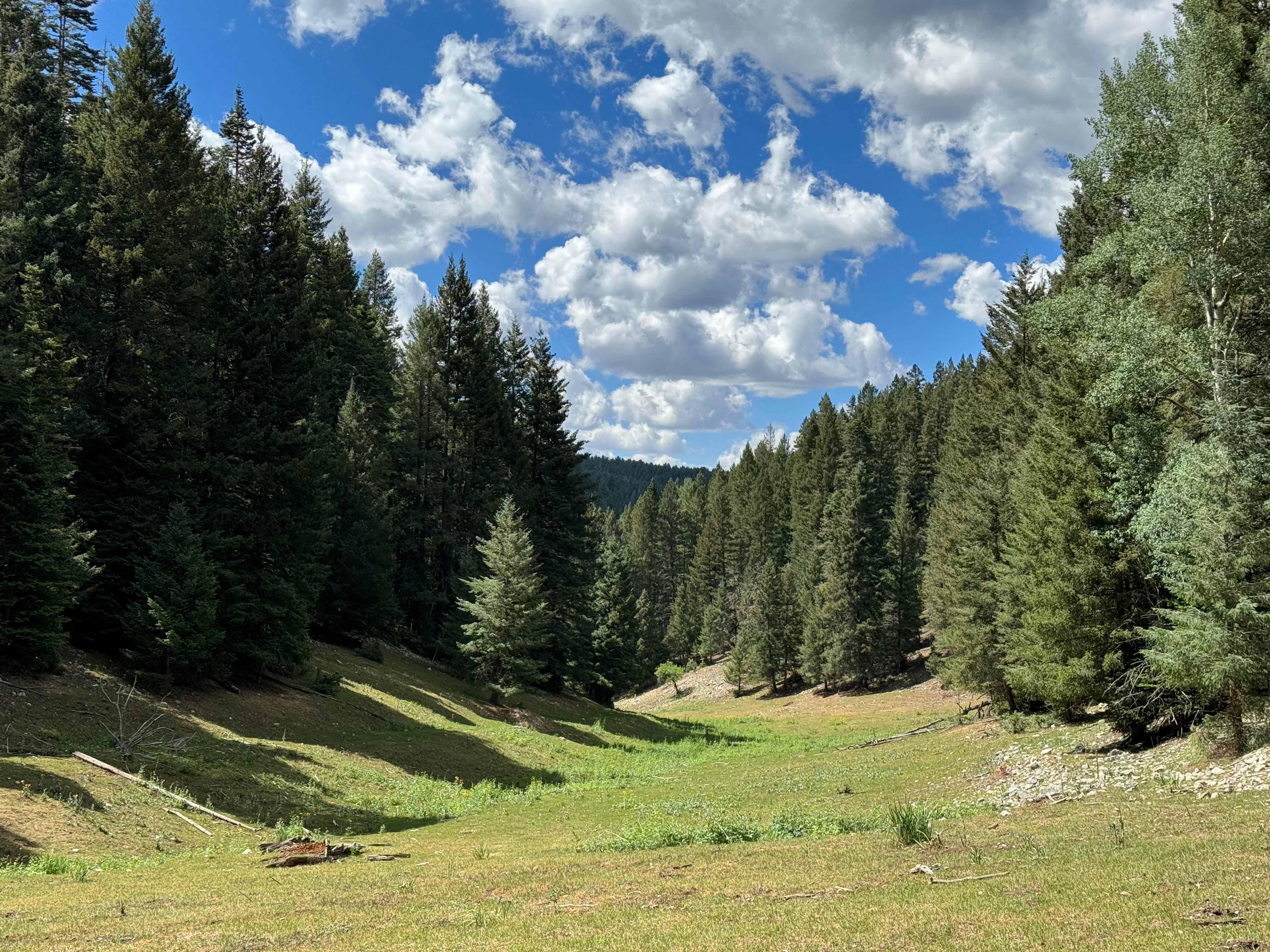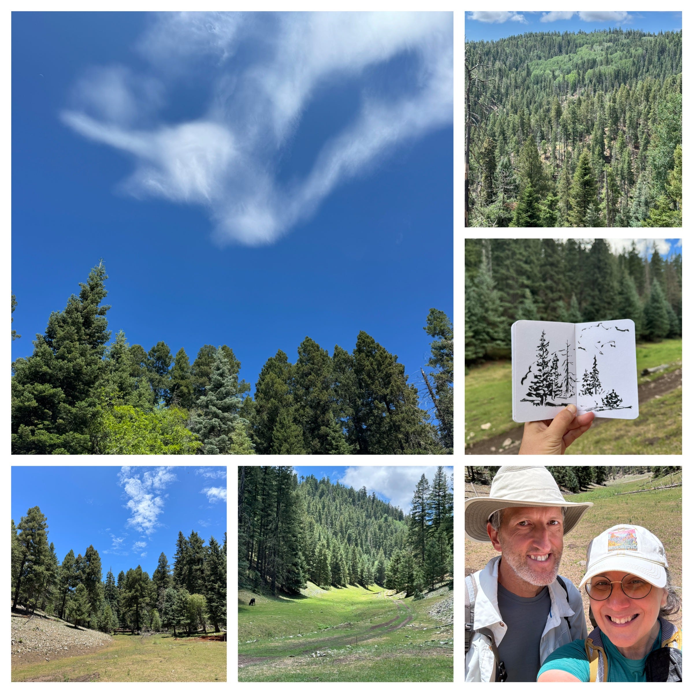 Hello, hello! Greetings from Lincoln National Forest in the Sacramento Mountains of New Mexico. I’m sitting in camp under a big Engelmann spruce and a squirrel is chewing up cones and dropping fragments on my head. Grasshoppers are flying through the air making these funny sounds like party favors, and there are so many butterflies and hummingbirds out and about. I’m feeling so lucky I get to call this beautiful place home for a while.
