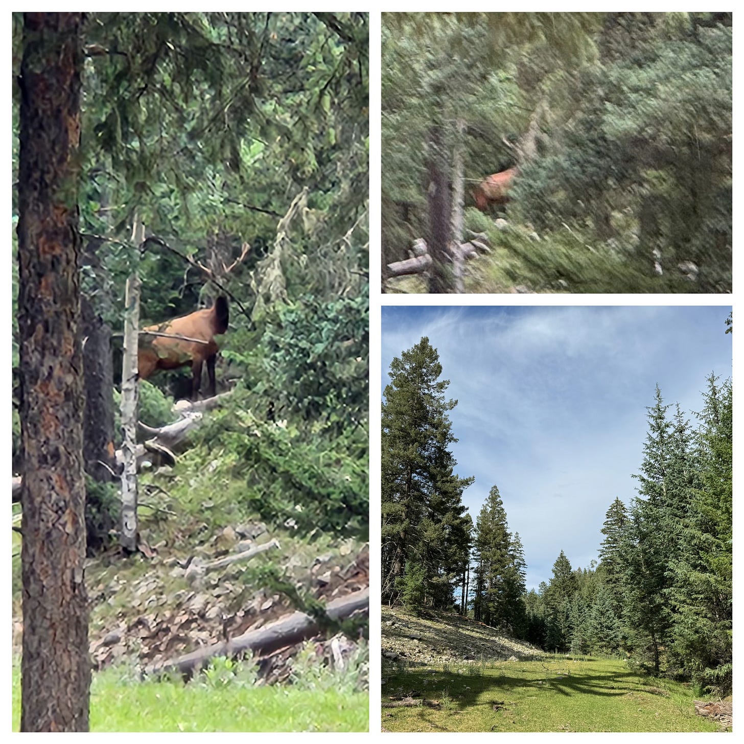 We went on 3 hikes this week, all starting right from camp. Here in Lincoln National Forest there are old logging roads, UTV trails, and even elk trails (my favorite). We did a combination of hiking on all of those plus just going across country — I’m still amazed that we can do that here — I’m used to having to stay on human trails!
