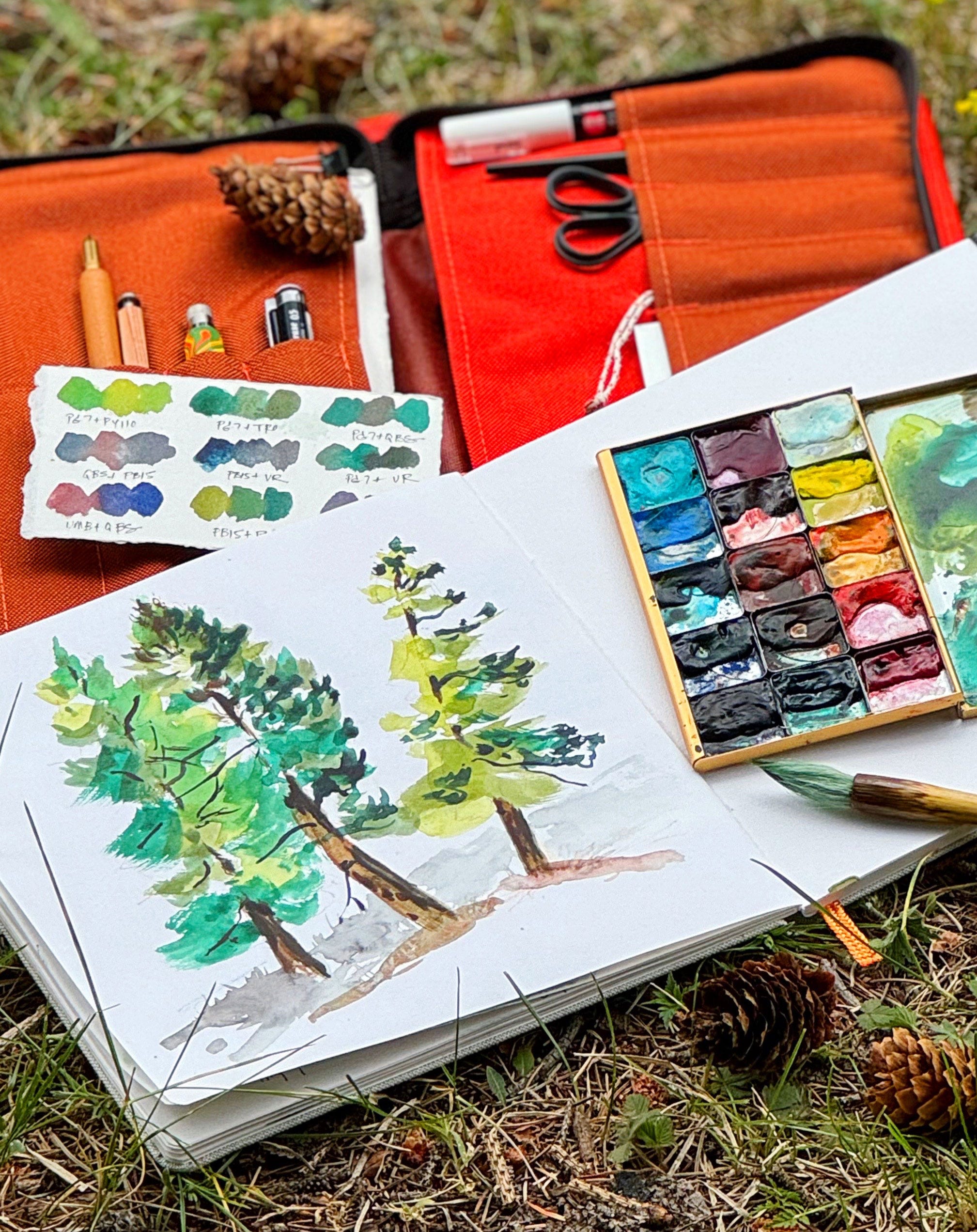 Let me know if you have any watercolor pencil tips — I’m just getting back into them and I feel a little rusty! They seem great for tree textures like these conifers.