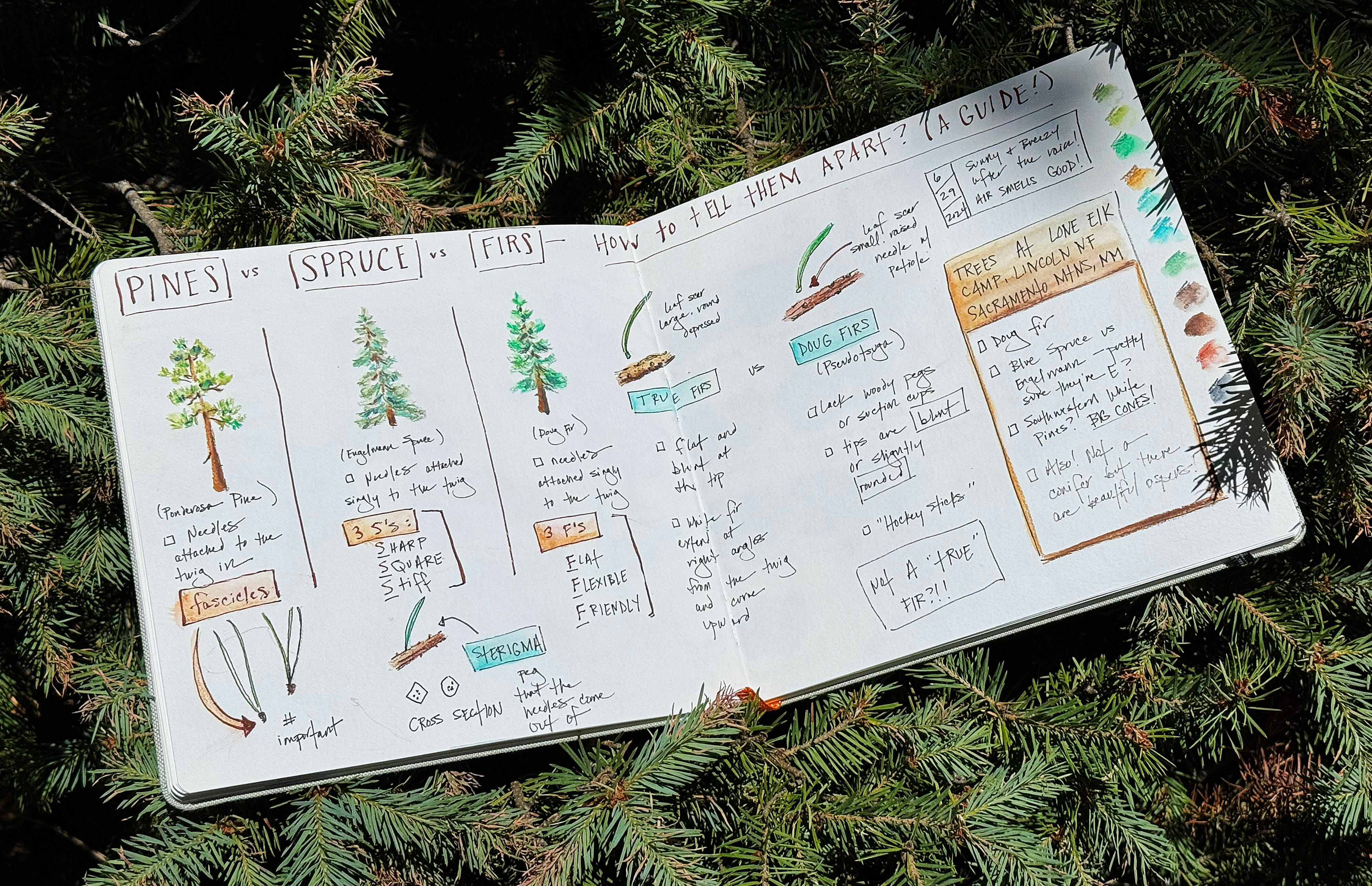 Next, I spent some time trying to ID the trees around camp and put together a cheat sheet on how to tell the difference between pines, spruces and firs. For those who don’t know I’m a botany nerd and can geek out about this all day!