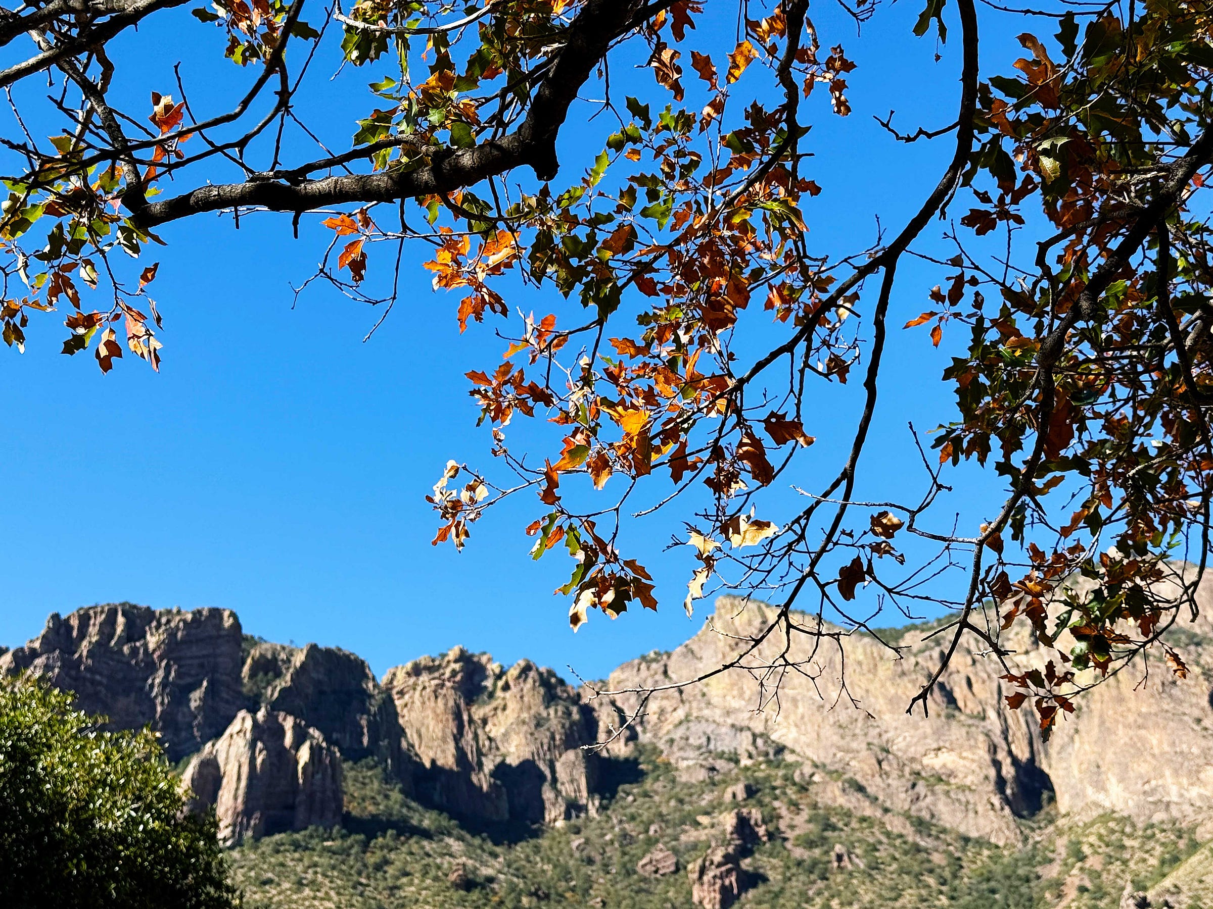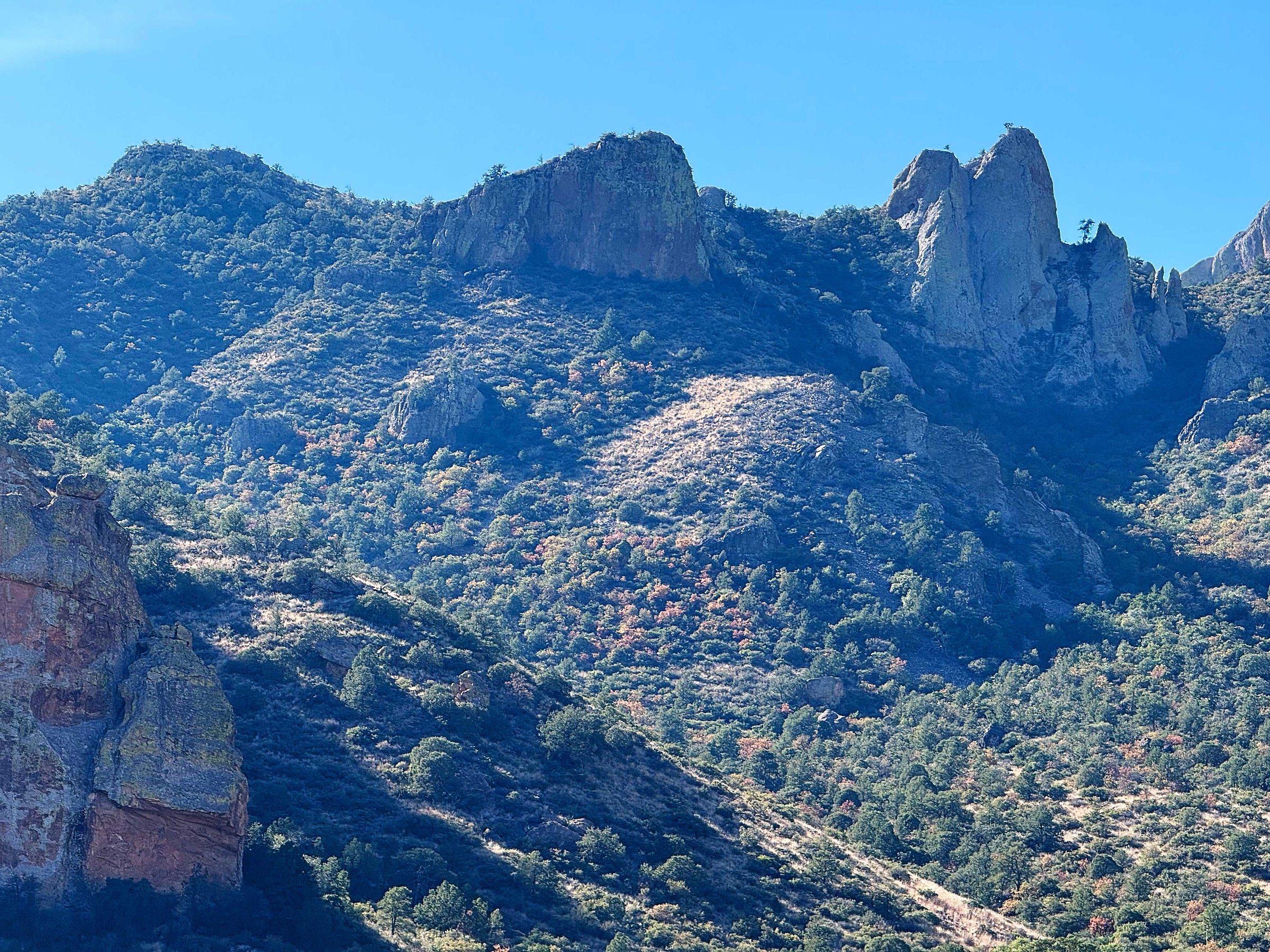 We hit the tail end of the fall color and there were bursts of oaks and bigtooth maples lighting up the peaks.