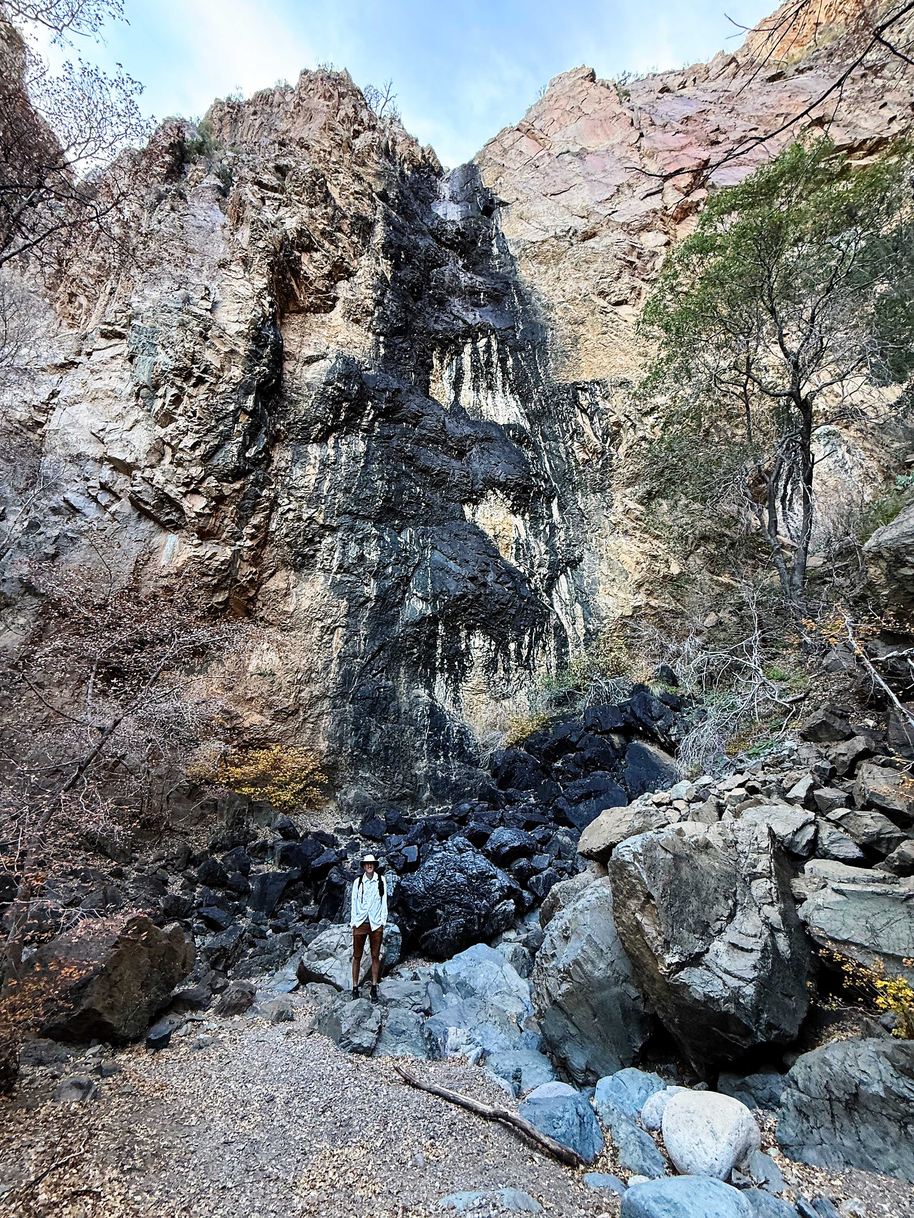 One time we were camping in Pine Canyon #3 in October when we still lived in Austin — we got our reservations when the forecast said it would be in the 70s, but it turned out to be in the 90s! So we hiked the trail two days in a row and spent the hottest part of the day up at the pour-off!