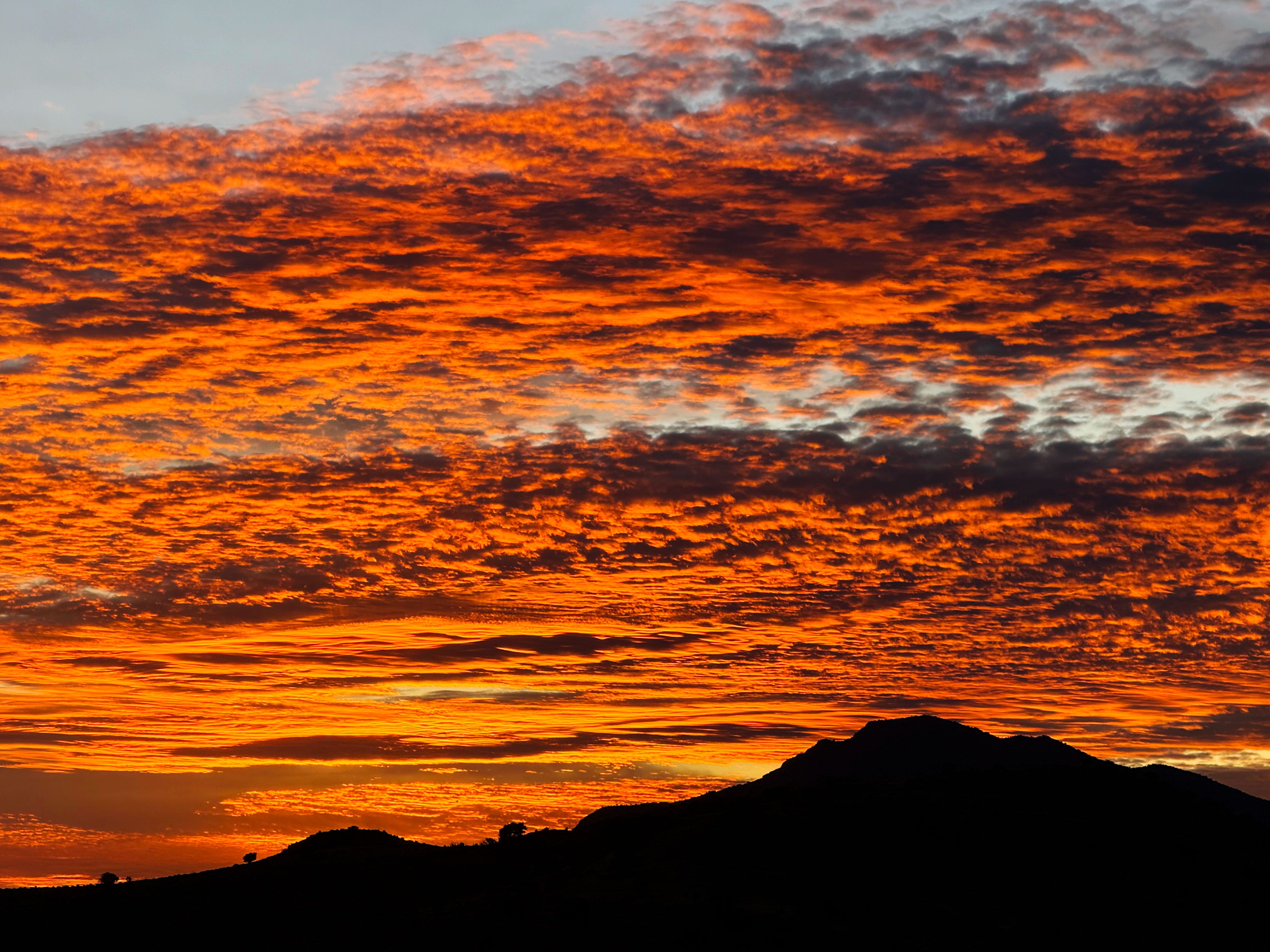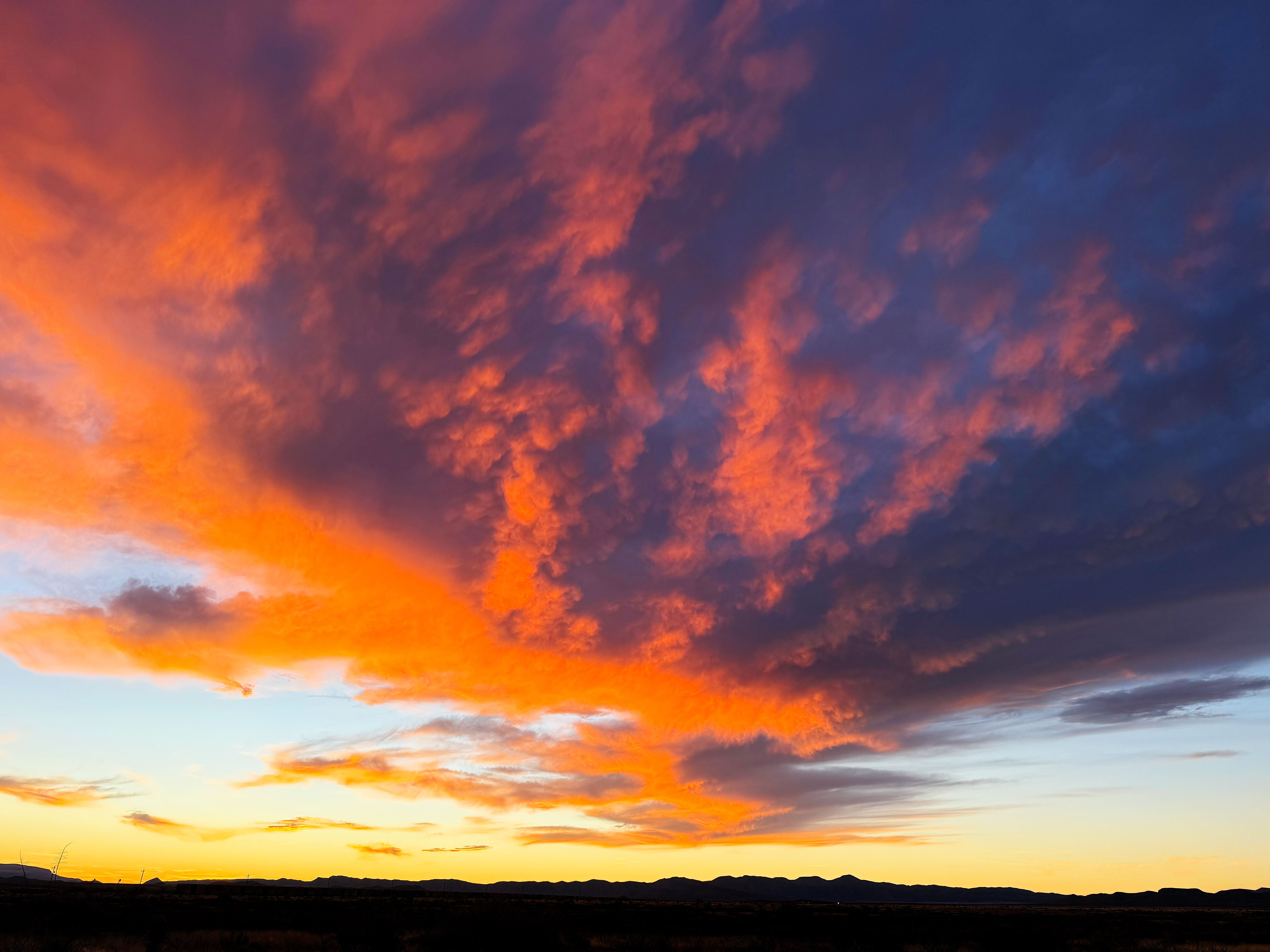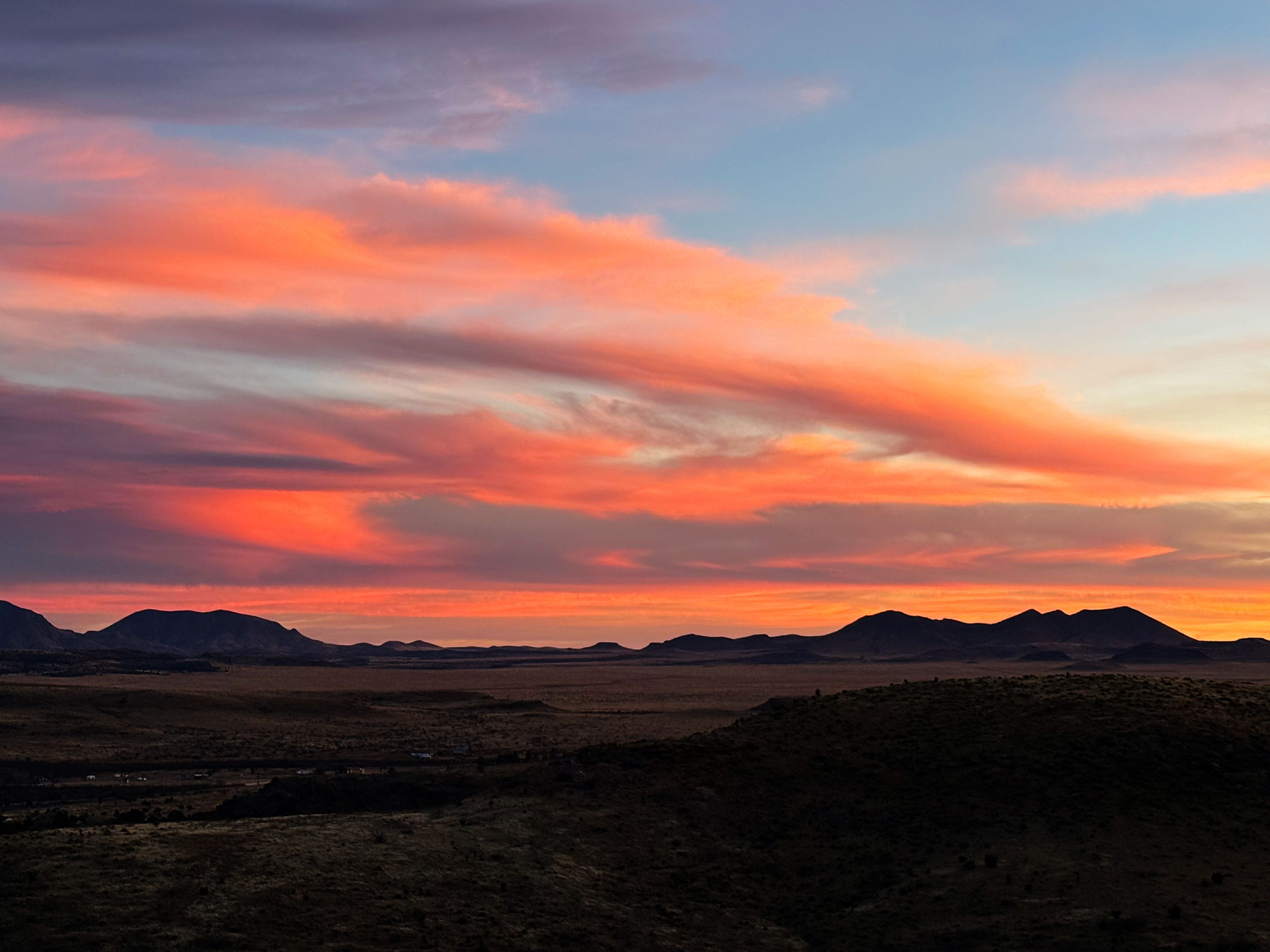 On New Year’s Day Jason woke me up to see the sunrise — and what a sunrise it was! Here was our view out the skylight from the van: