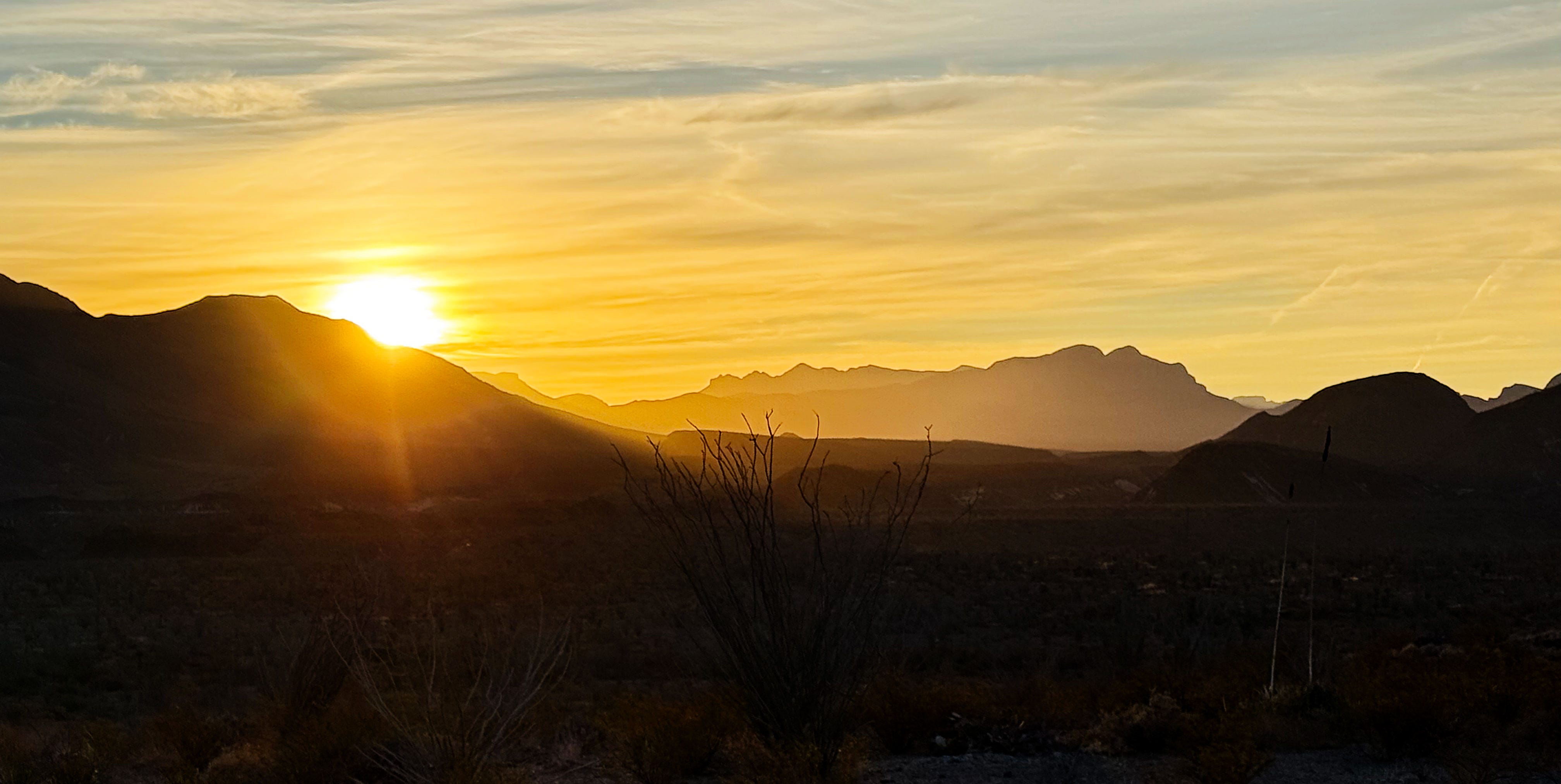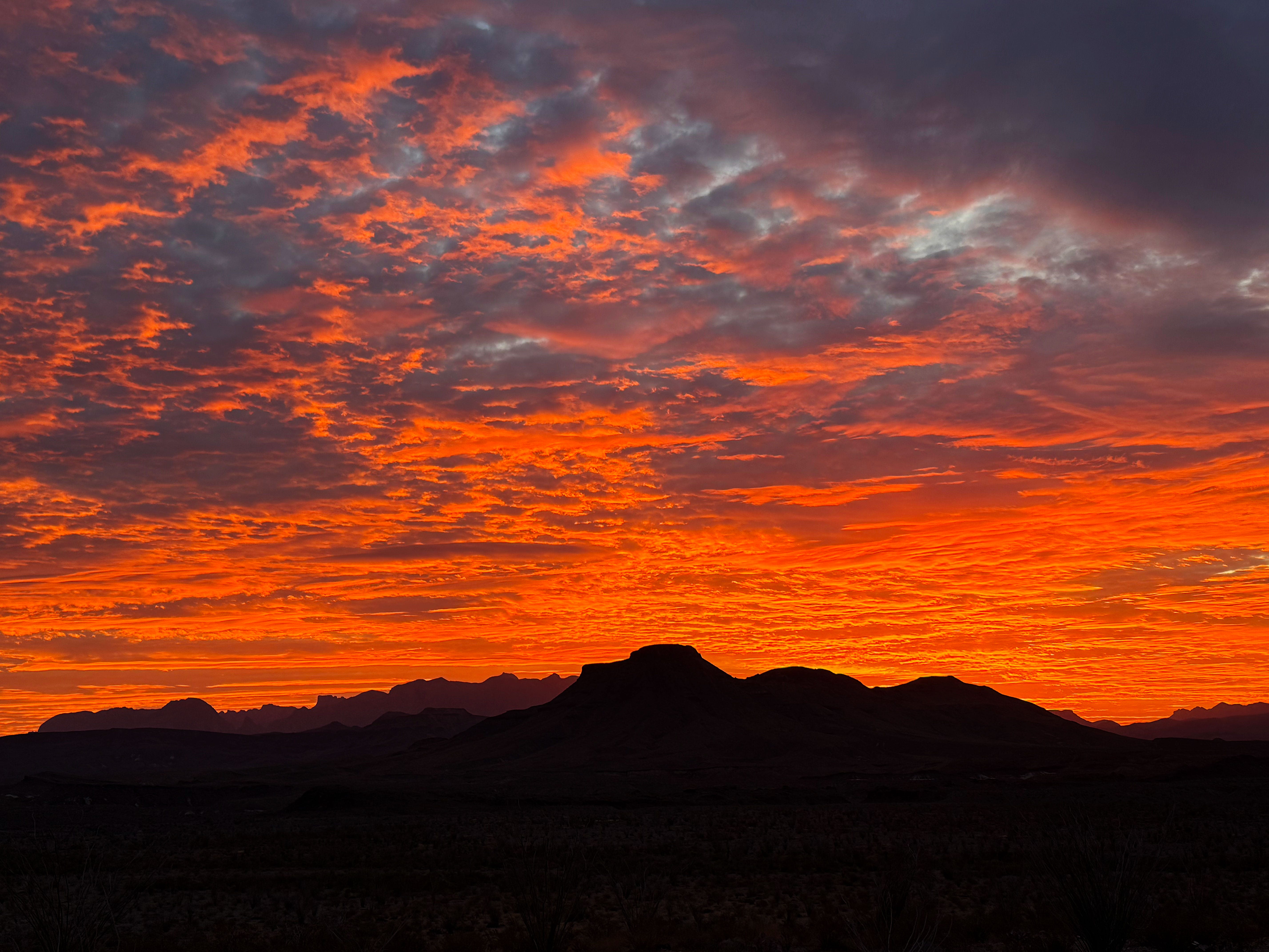 We rang in the new year at Grand View #2, a primitive roadside camping spot — which really does have a grand view of the Chisos Mountains!