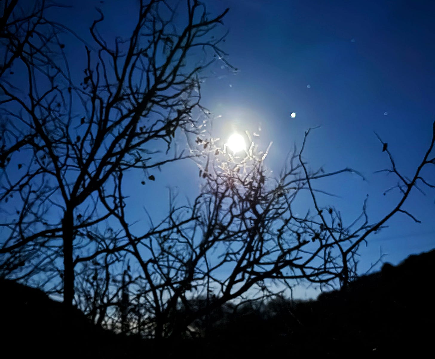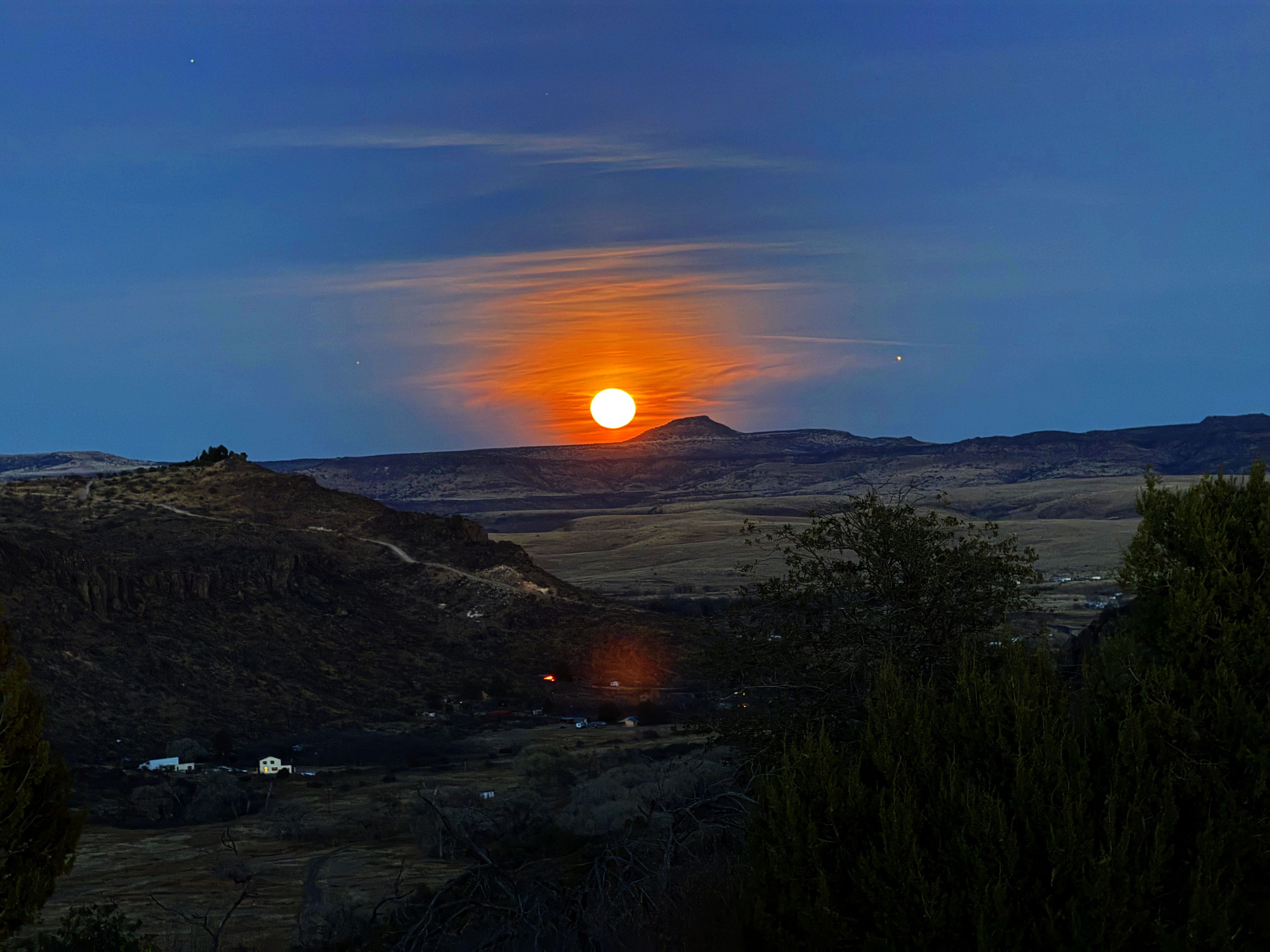 As we were carrying the last load of laundry to the van the moon was rising — it stopped me in my tracks and I had to run to the van, drop off the clothes and get a photo: