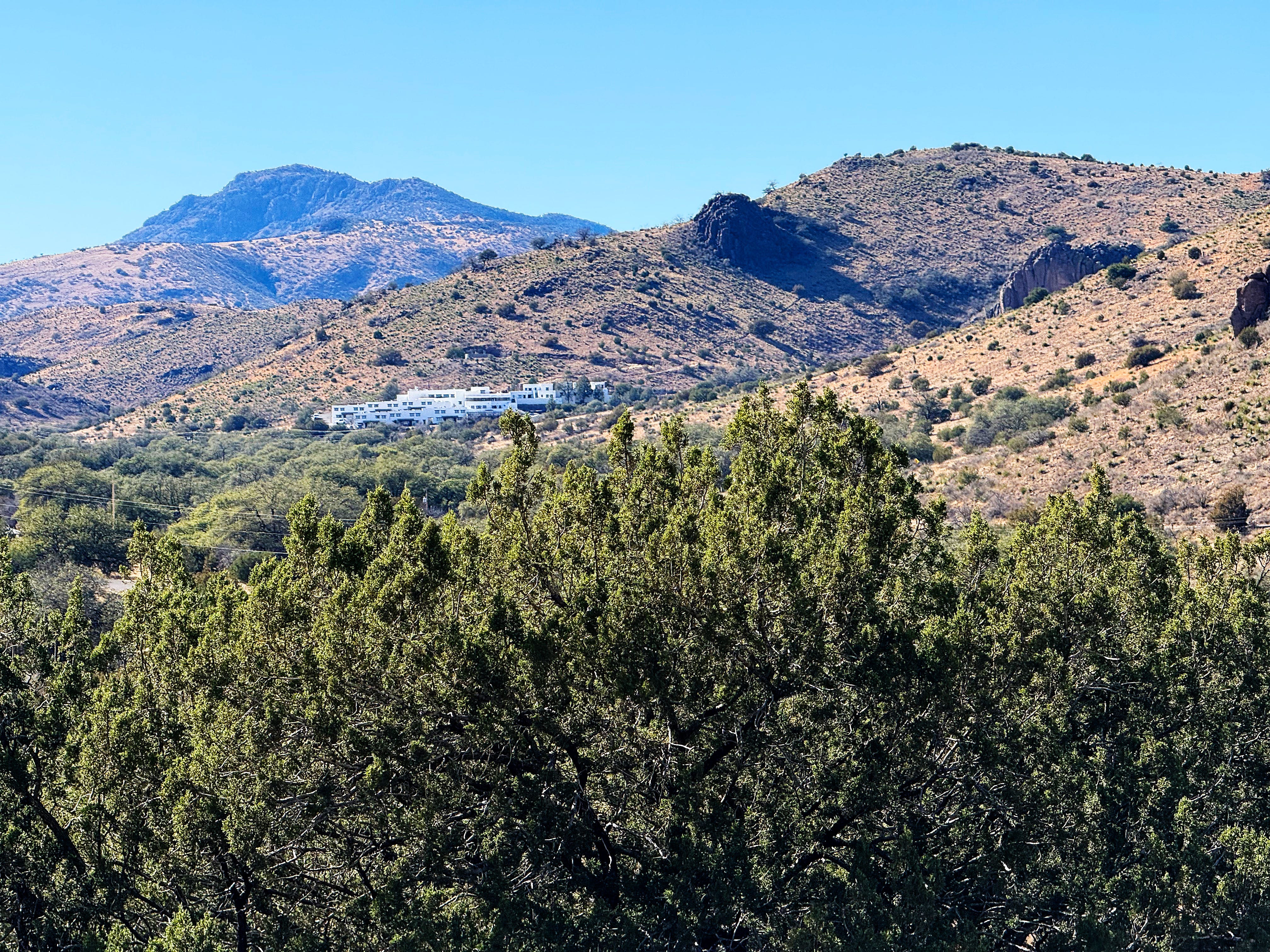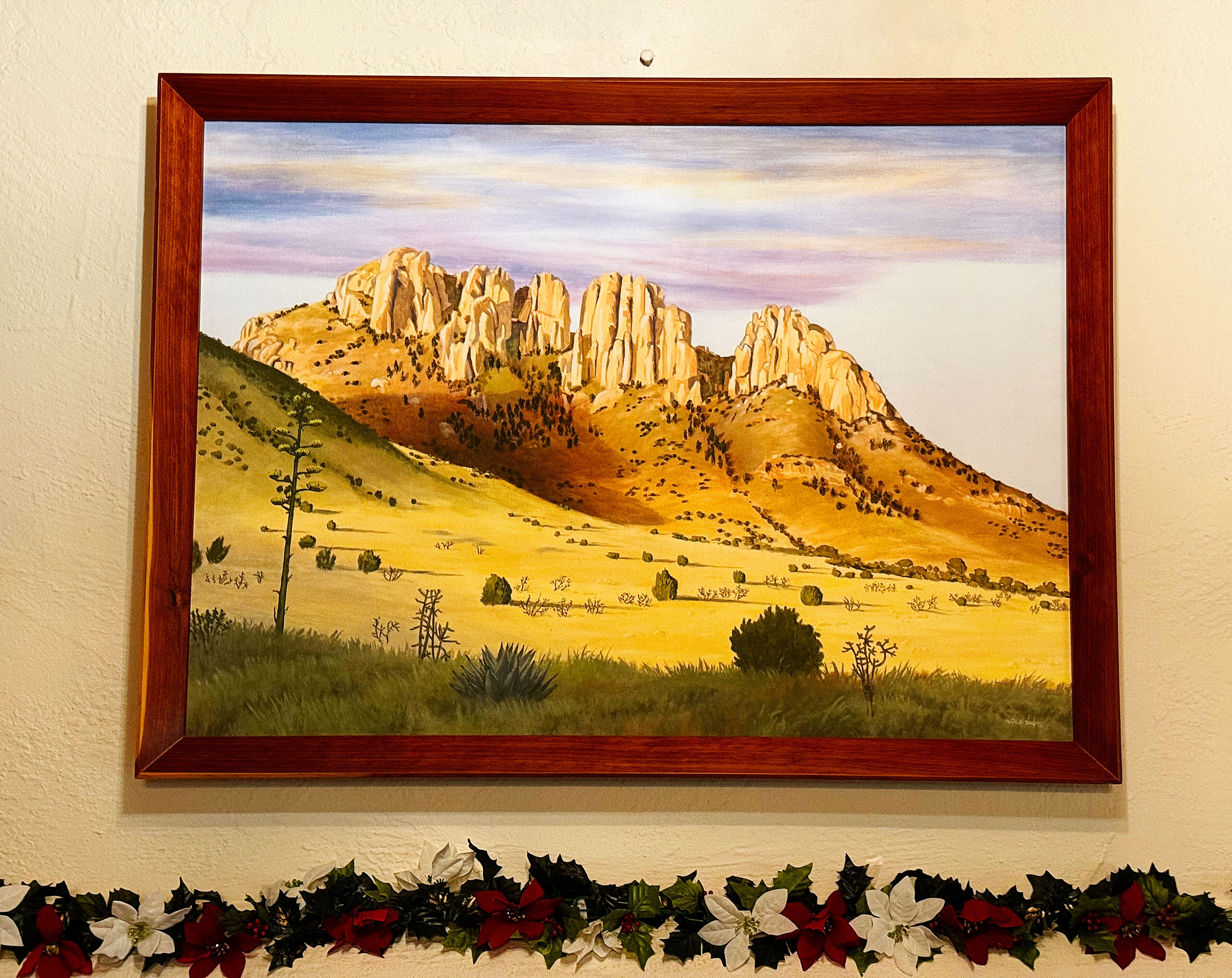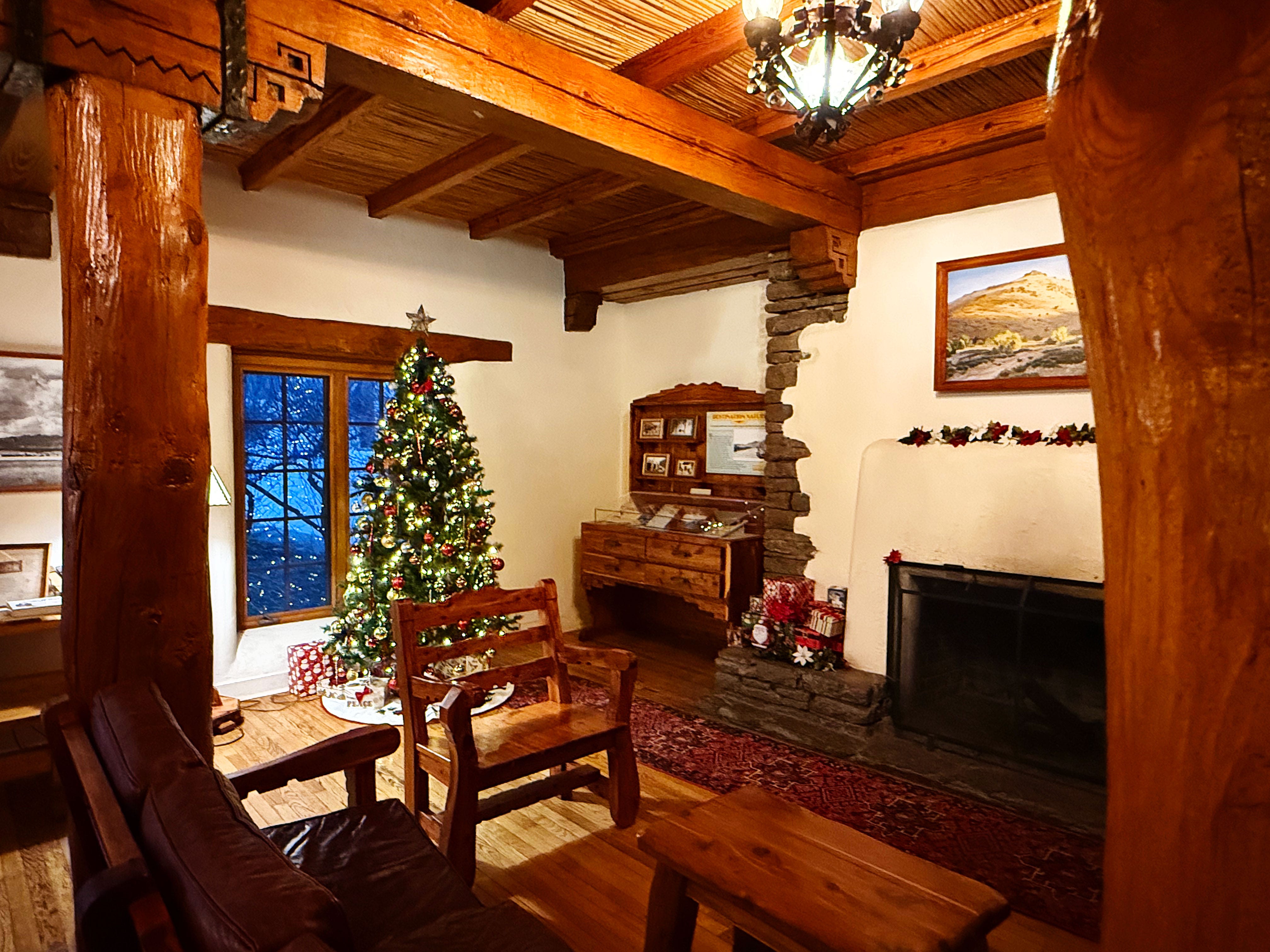 Monday we hiked over to the Indian Lodge, a full-service hotel in Davis Mountains State Park, from our campsite to see if they still had their Christmas decorations up in the common room — and they did!