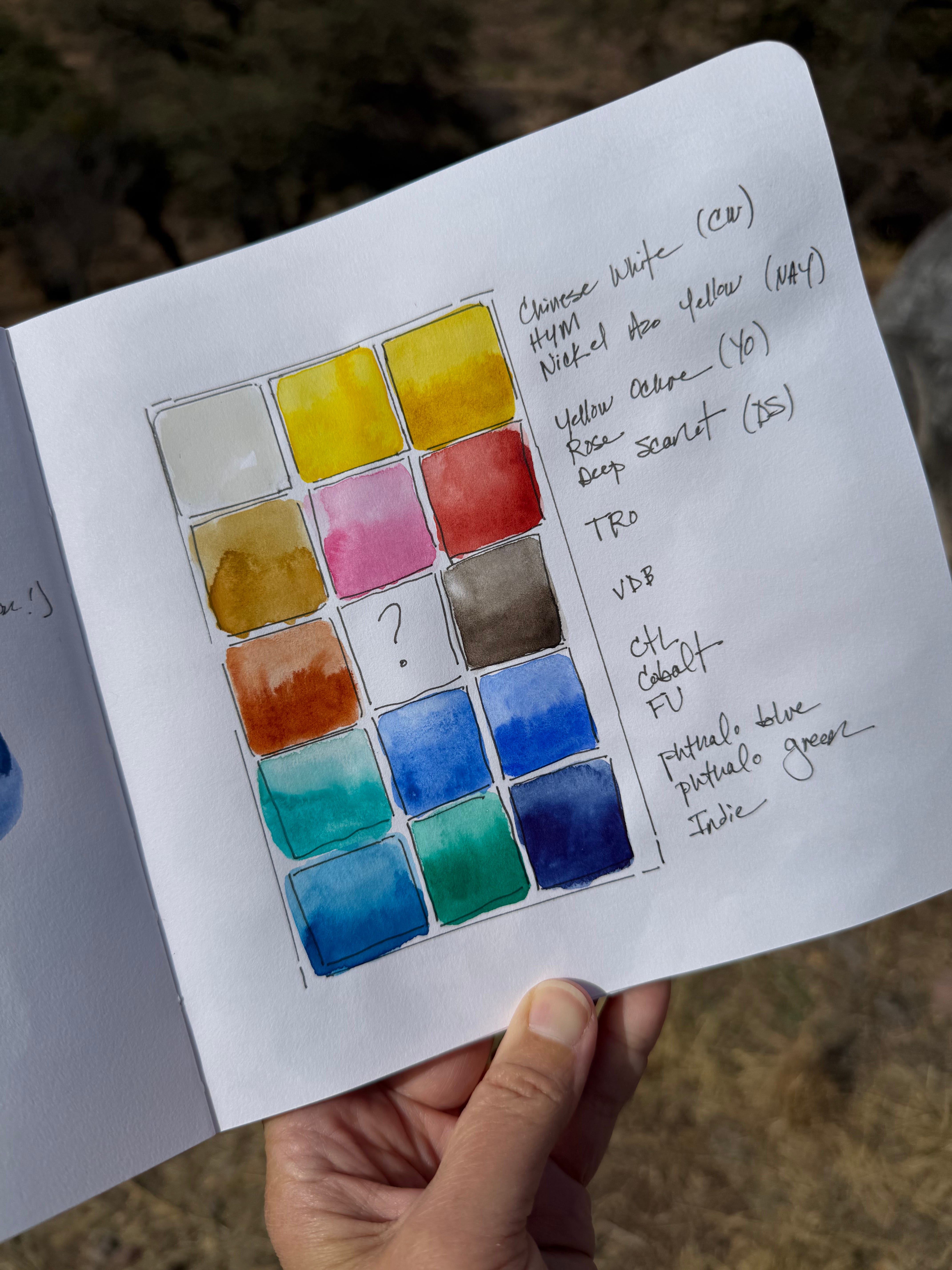 Colors are as follows — all Daniel Smith unless specified, WN = Winsor & Newton, H = Holbein