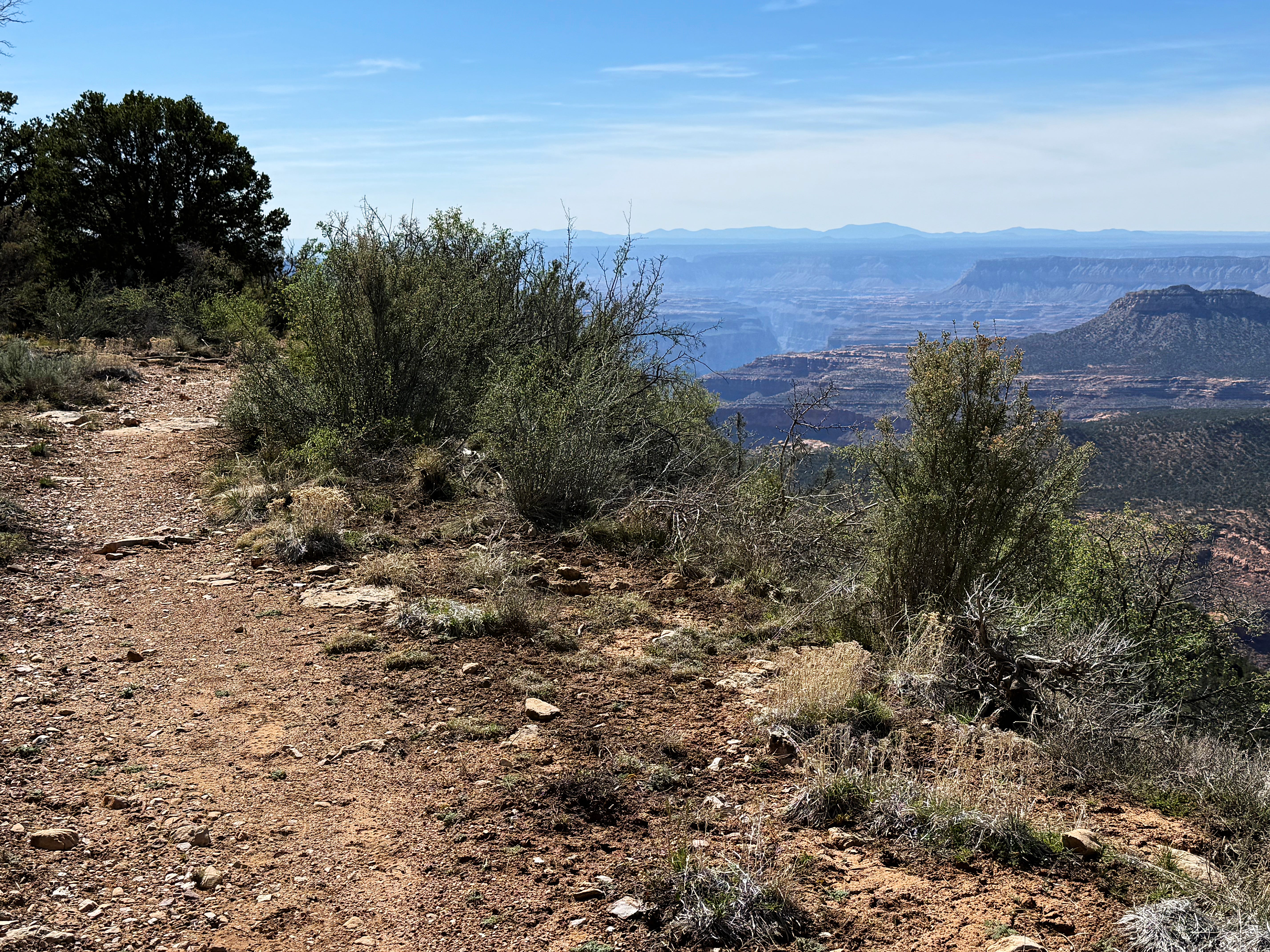 As luck would have it, the Rainbow Rim Trail runs near our campsite, about a half mile from Locust Point. So we decided to hike to Fence Point, the next major opening in the forest with views of the Grand Canyon: