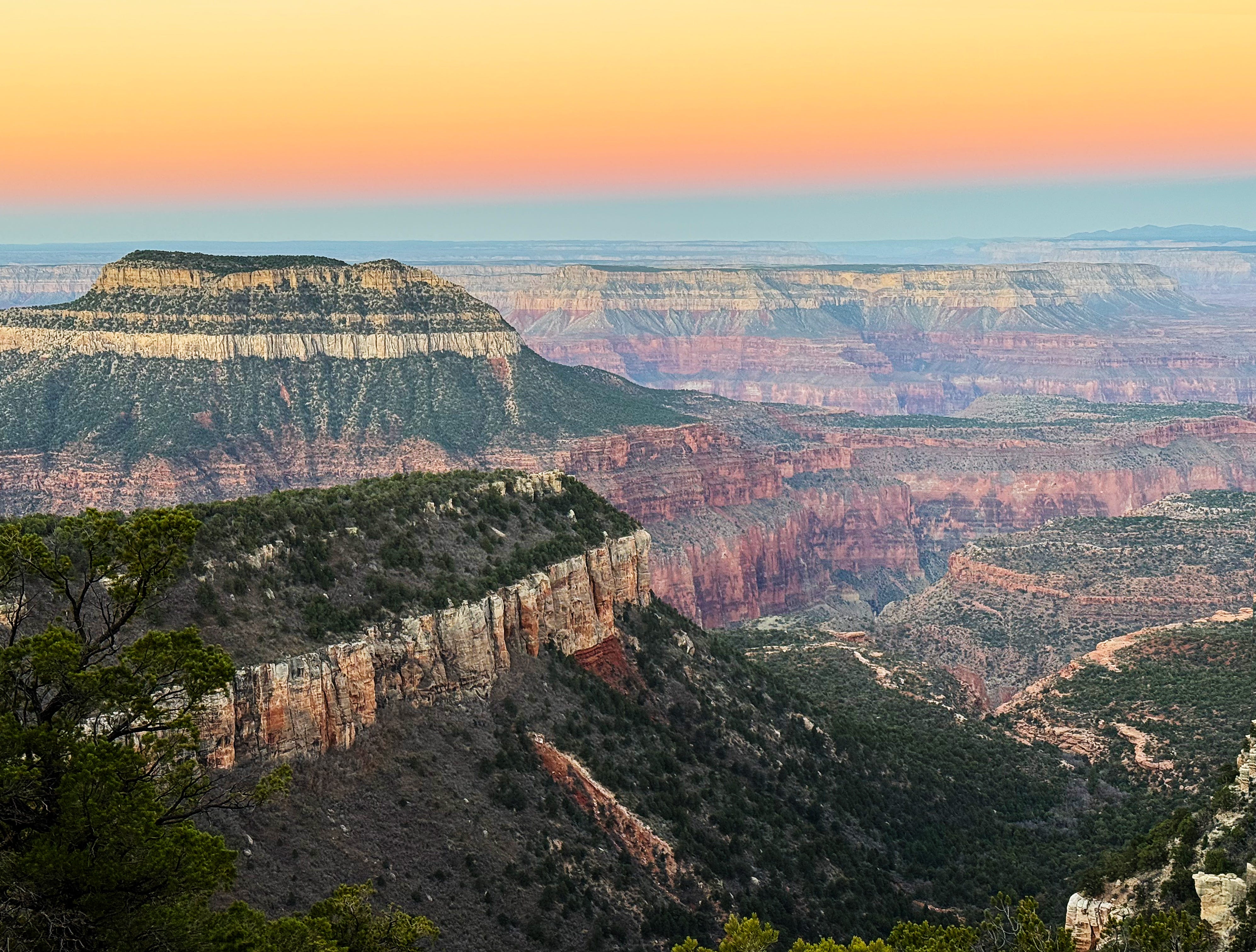 Kaibab National Forest ends about 6 feet down from the edge of the cliff and that’s where Grand Canyon National Park begins!