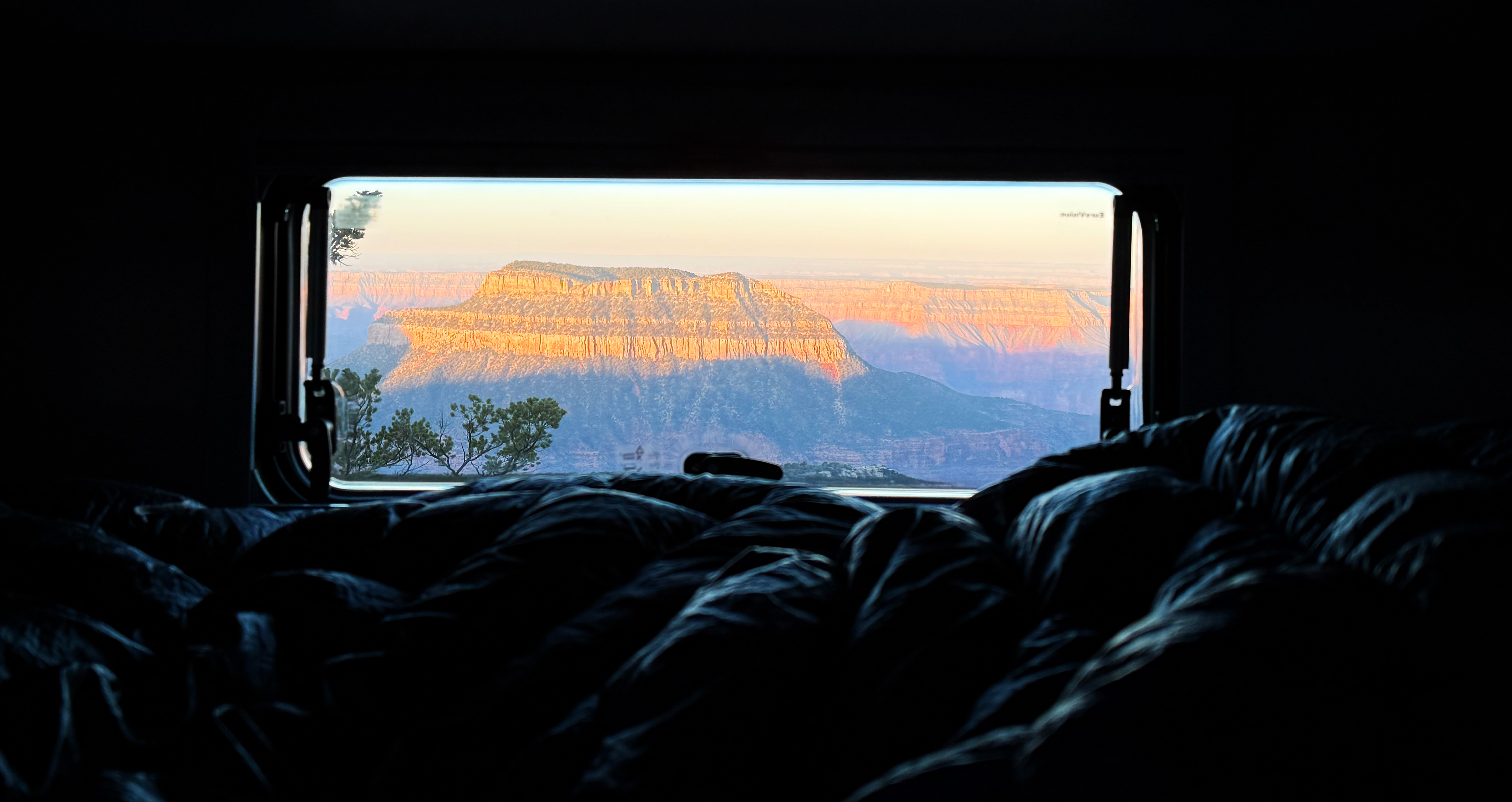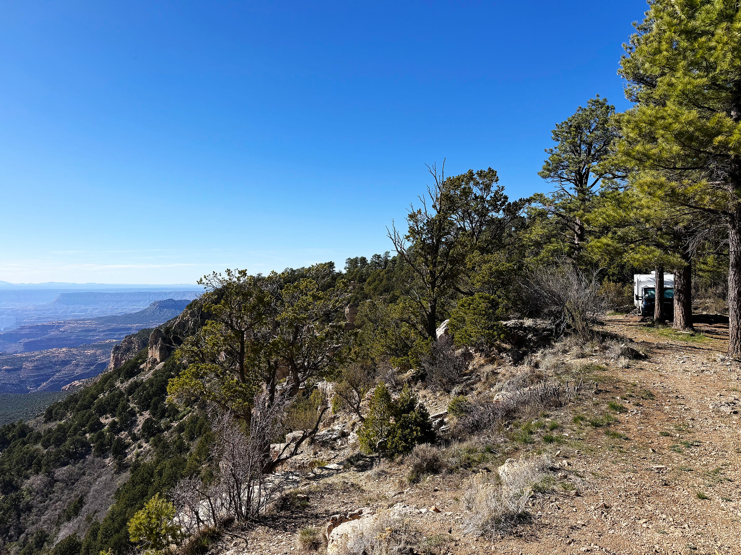When I say “camping on the rim” I mean it too — this is the view from the van:
