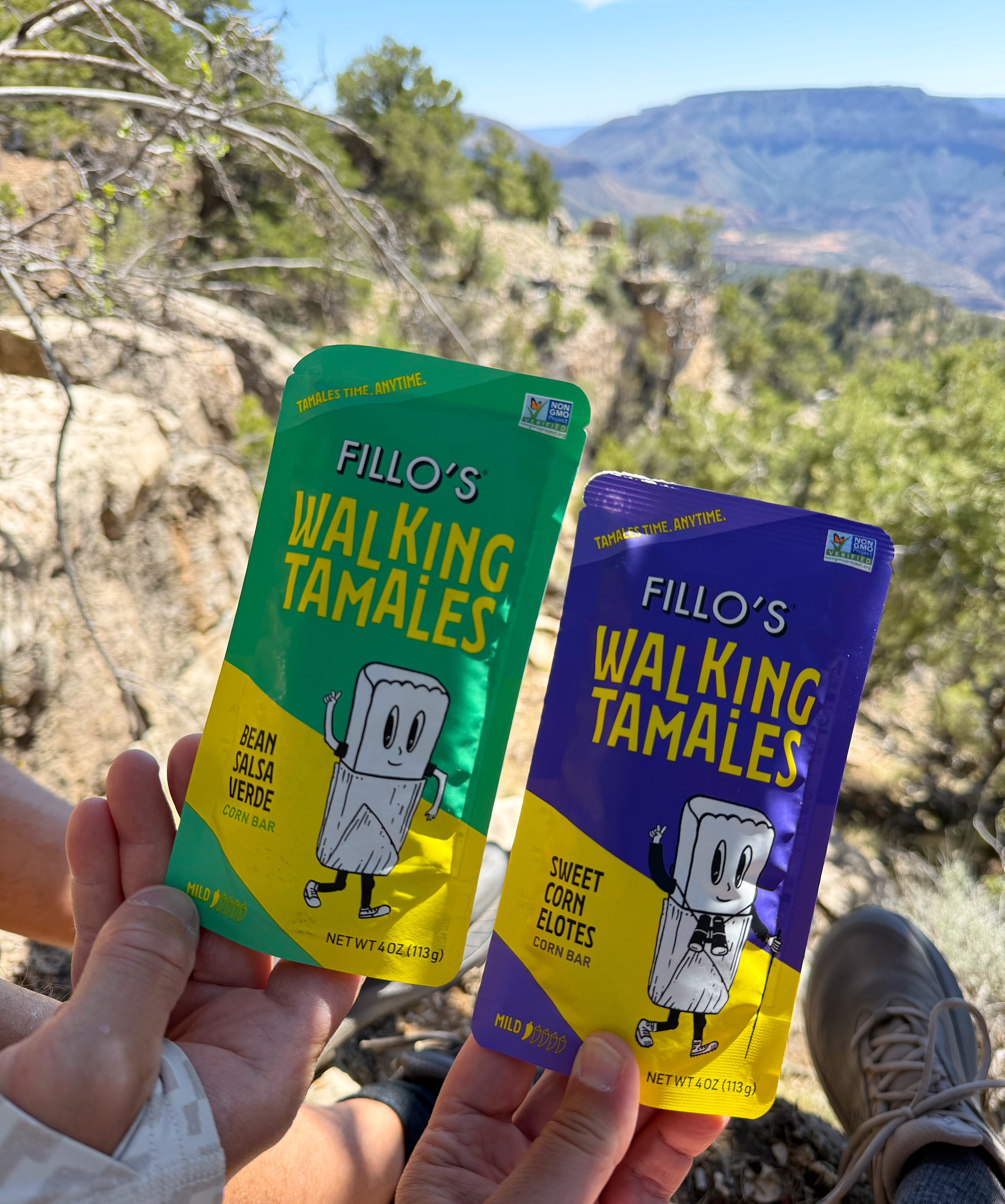 When we got there we stopped in the shade for a snack, trying out these Fillo’s Walking Tamales for the first time: