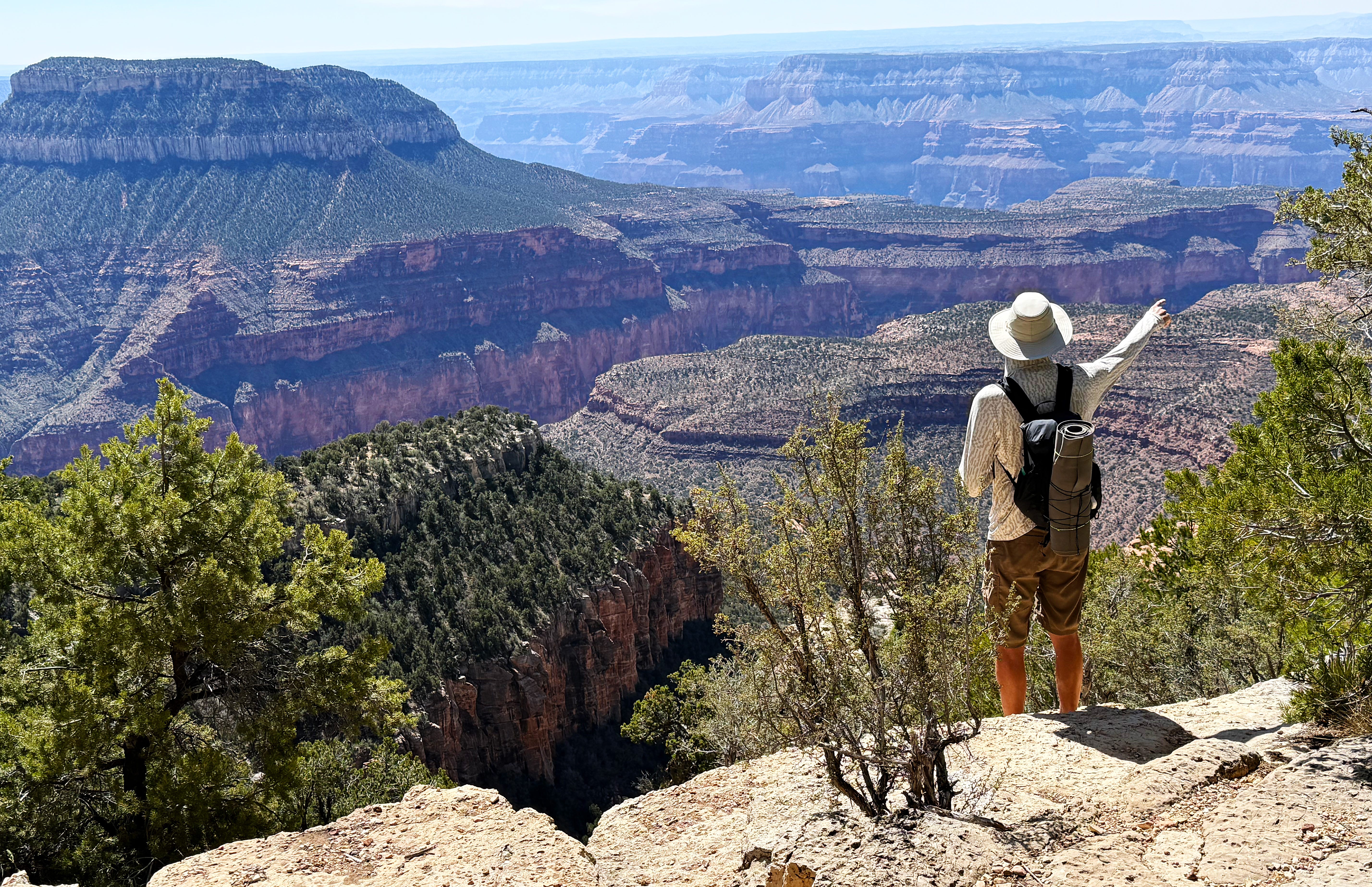 It’s hard to take the Grand Canyon in — it’s just so grand that the mind can’t comprehend it! Here’s Jason for scale, pointing to Fence Point: