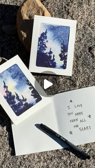 I made these Valentines in camp today featuring the night sky and I thought I’d film them in case you wanted to try them too! They’re a great way to practice painting the Milky Way — and conifers. Full details in the video description.