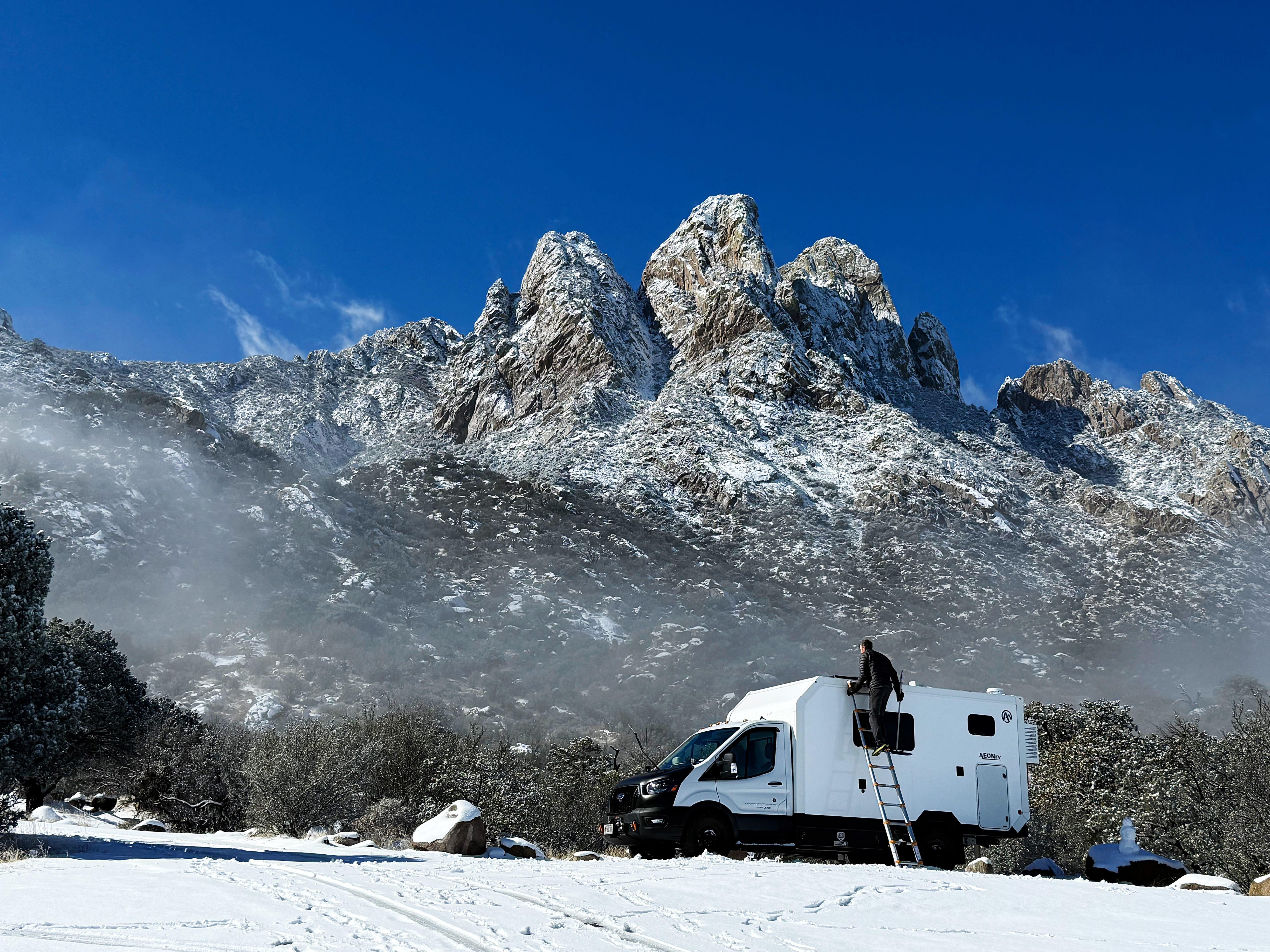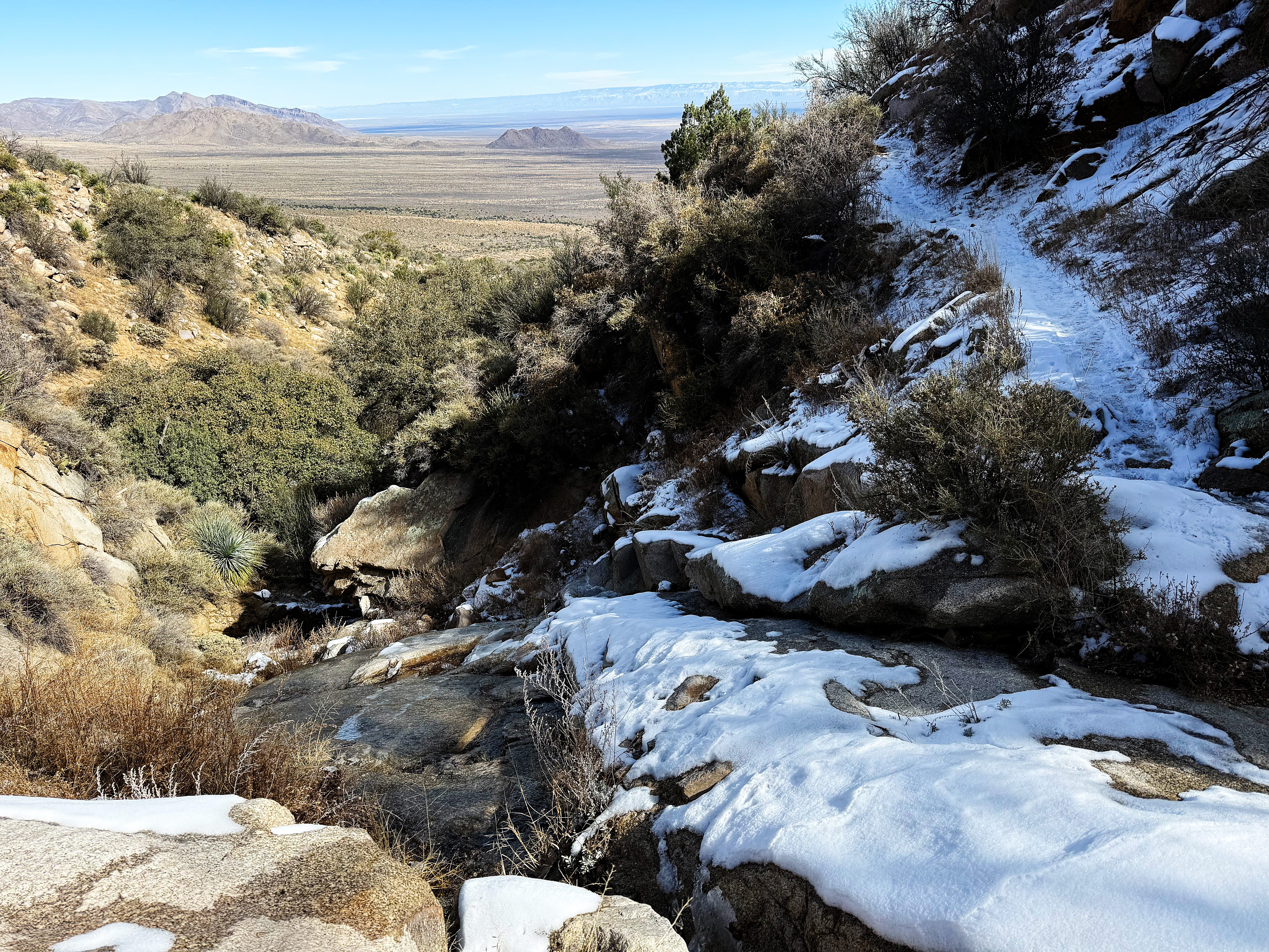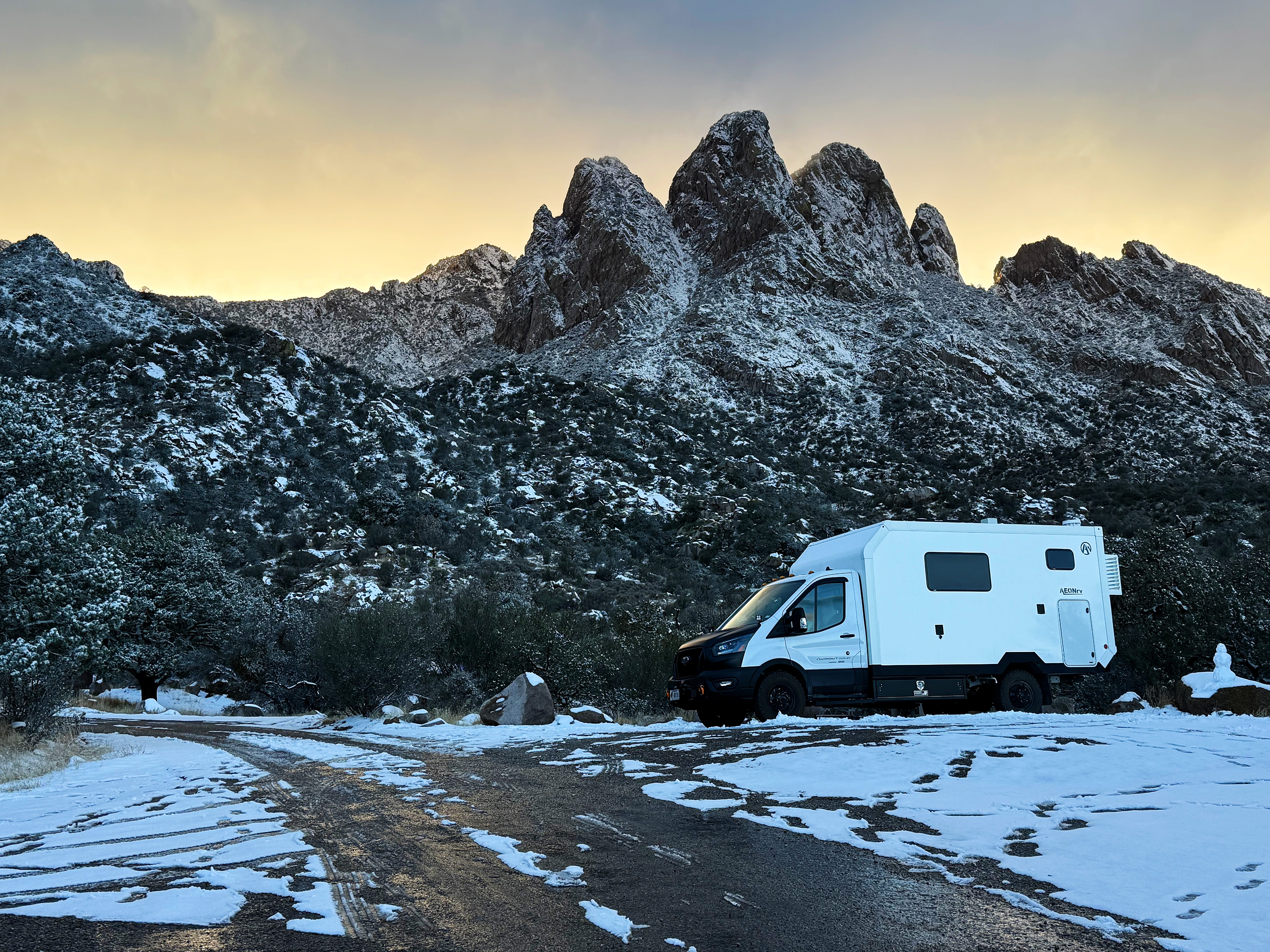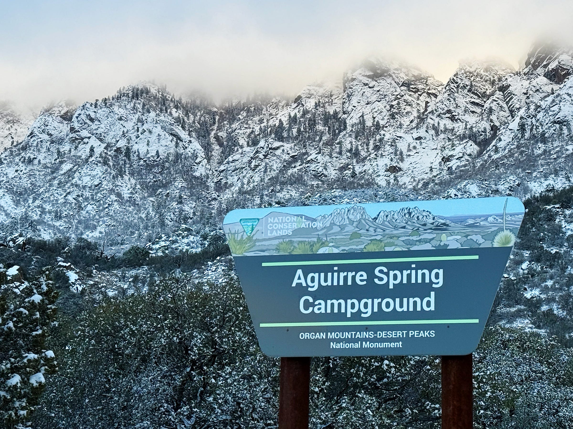 Jason did a bunch of research, and it looked like Aguirre Springs Campground in OMDP would get some snow — but not too much — so off we went.