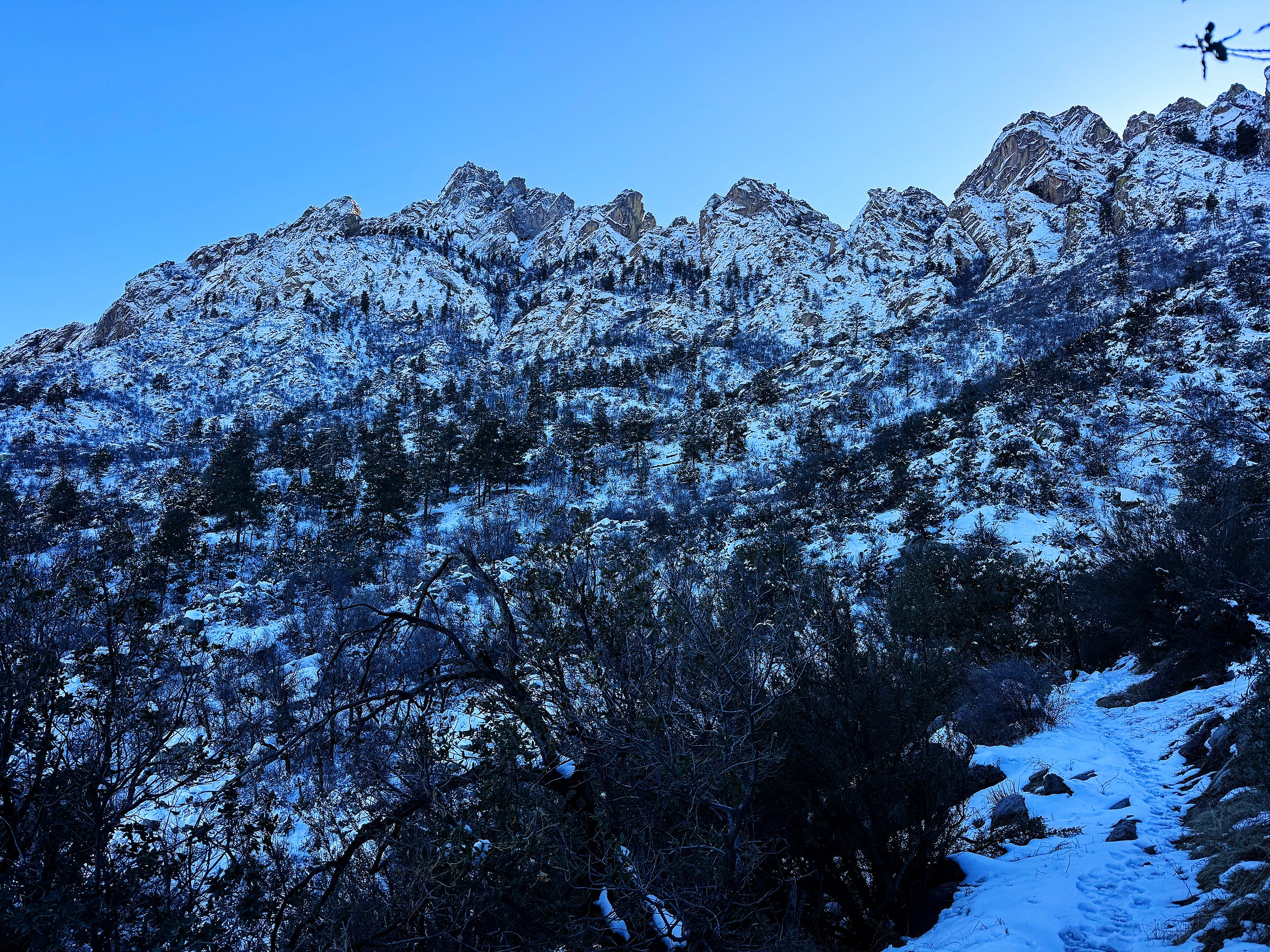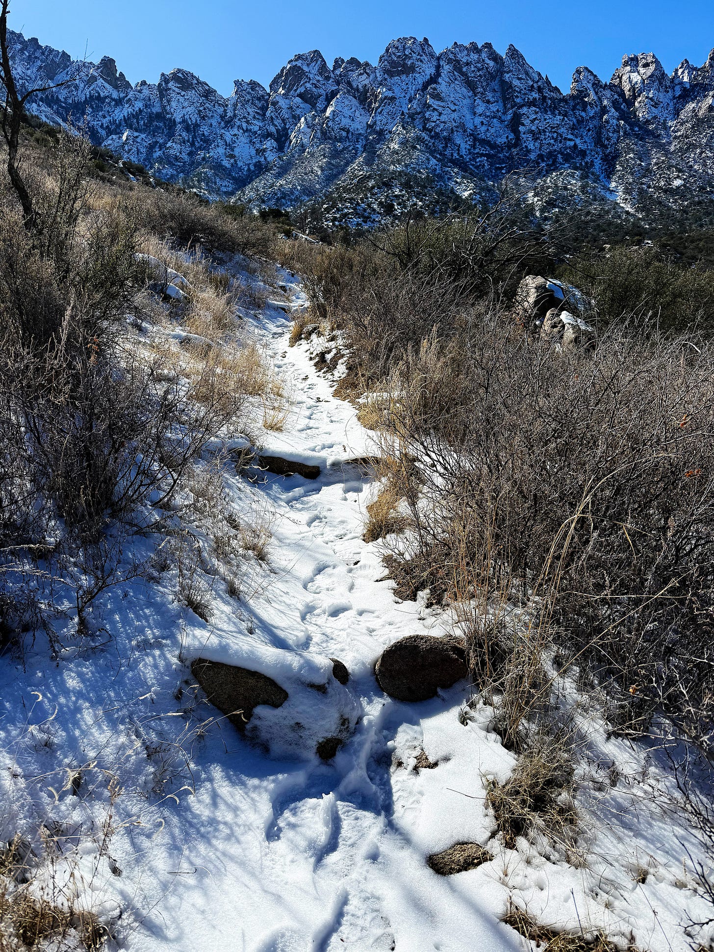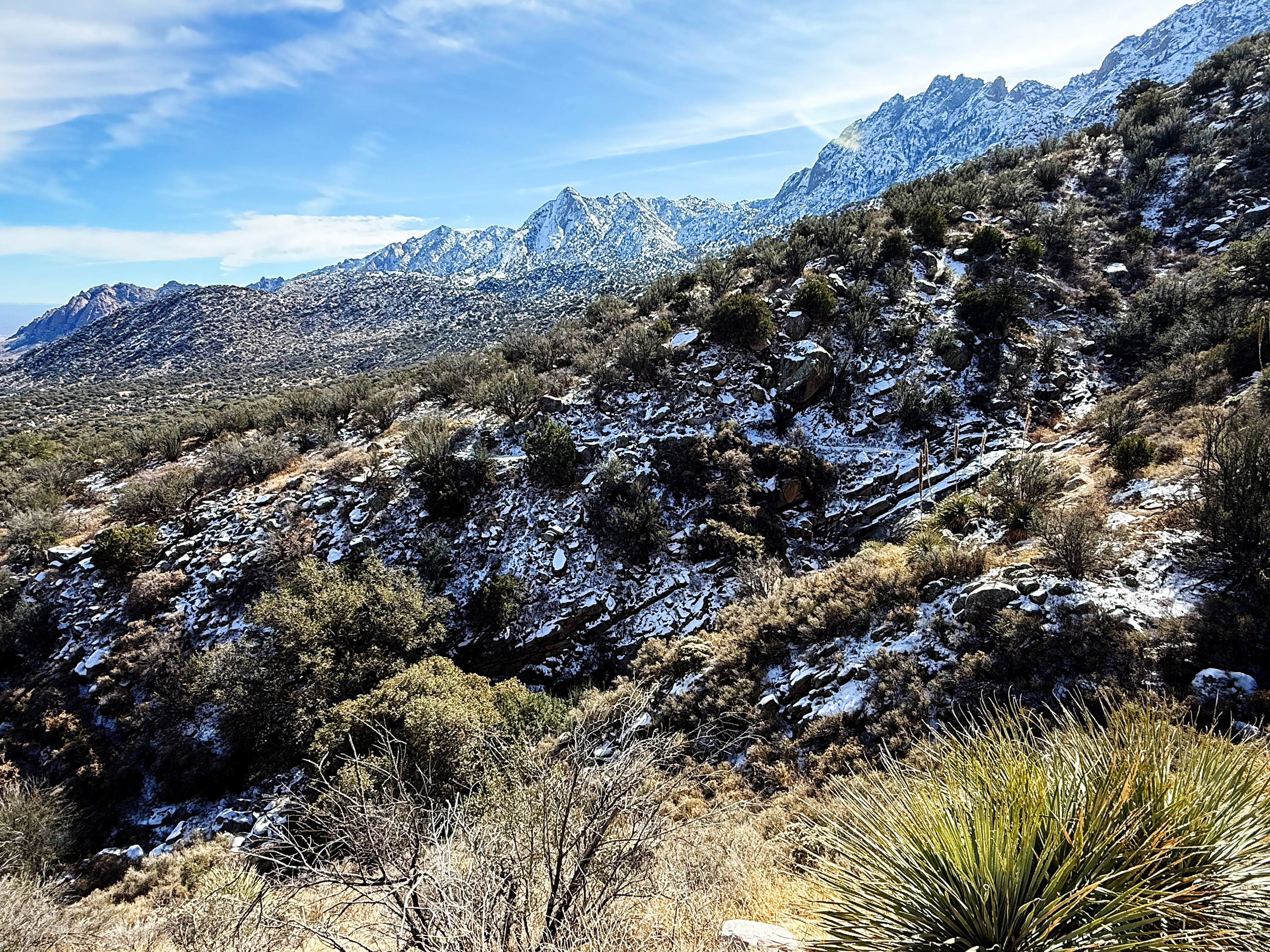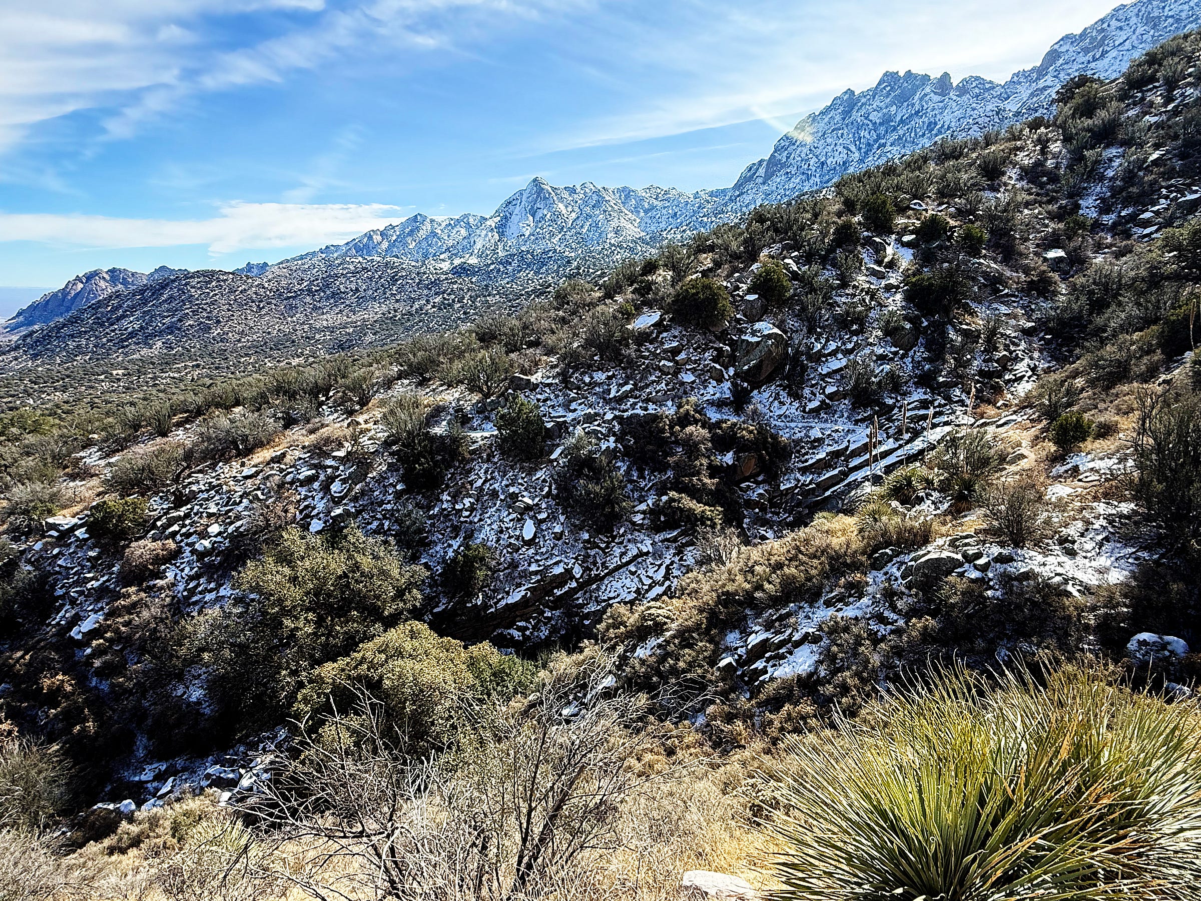 Jason did a bunch of research, and it looked like Aguirre Springs Campground in OMDP would get some snow — but not too much — so off we went.