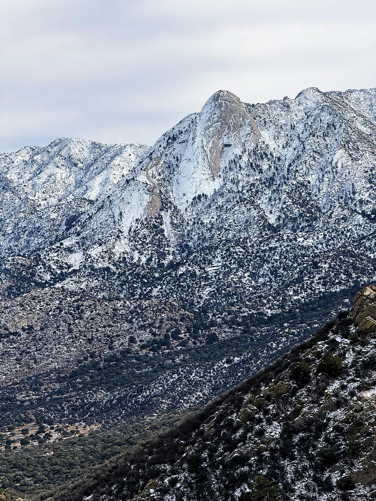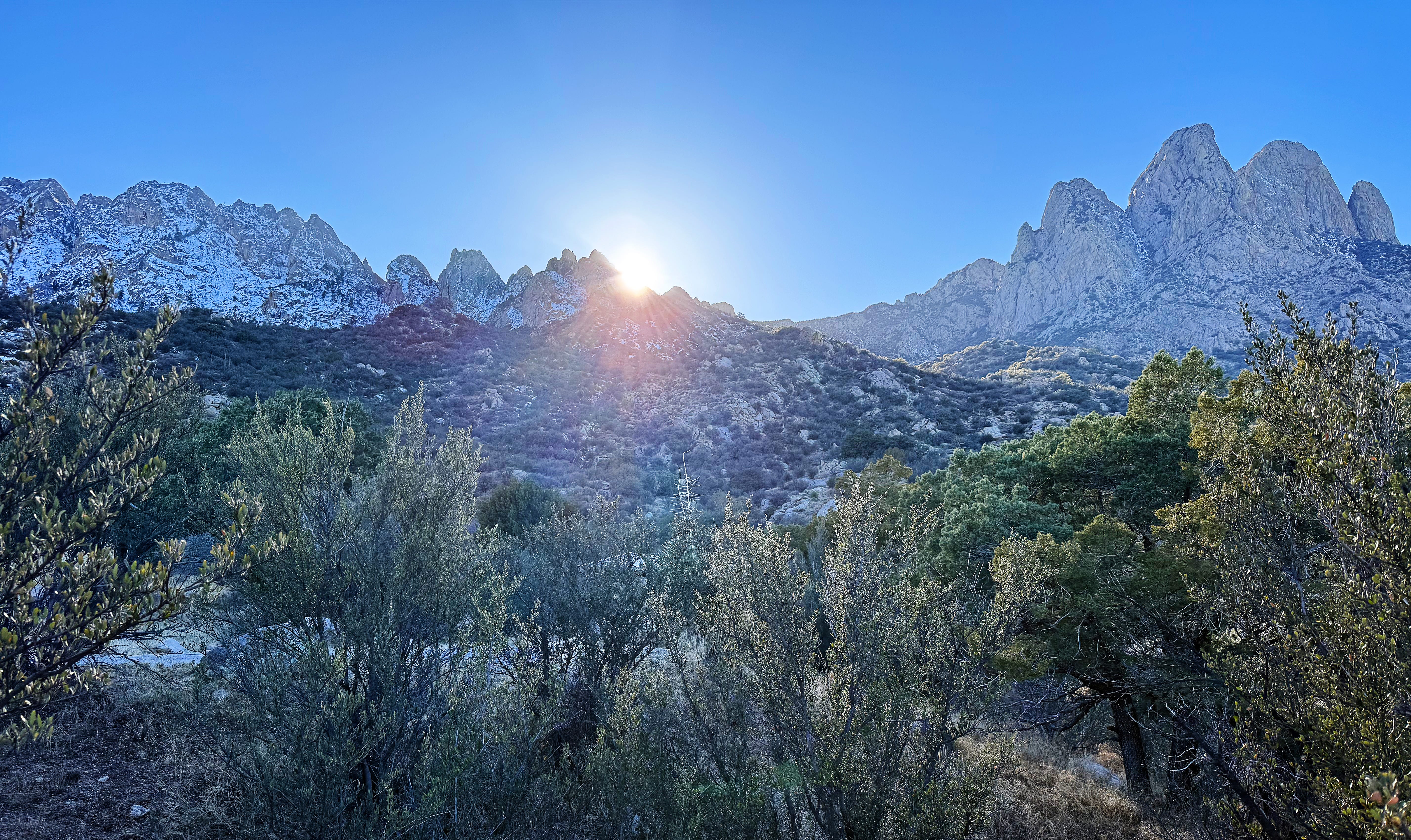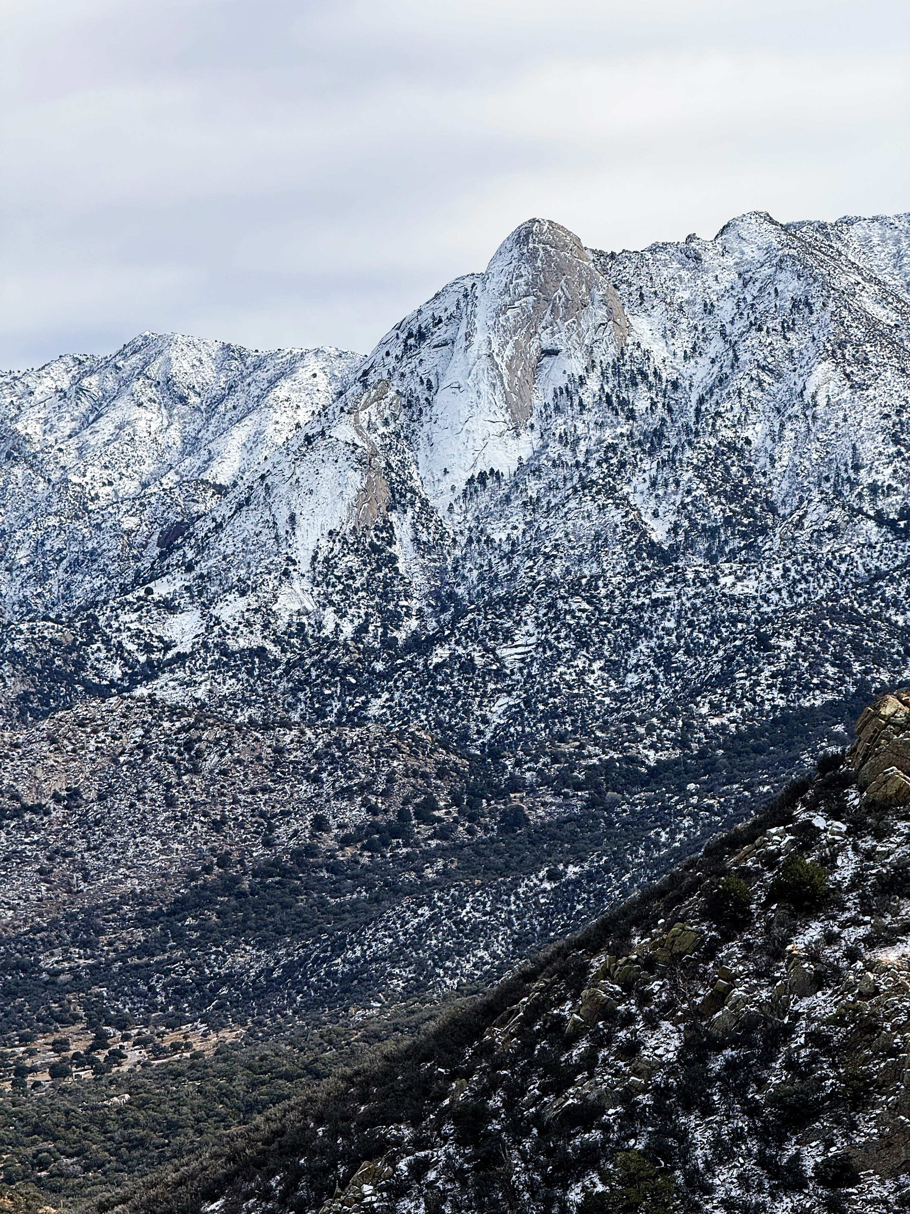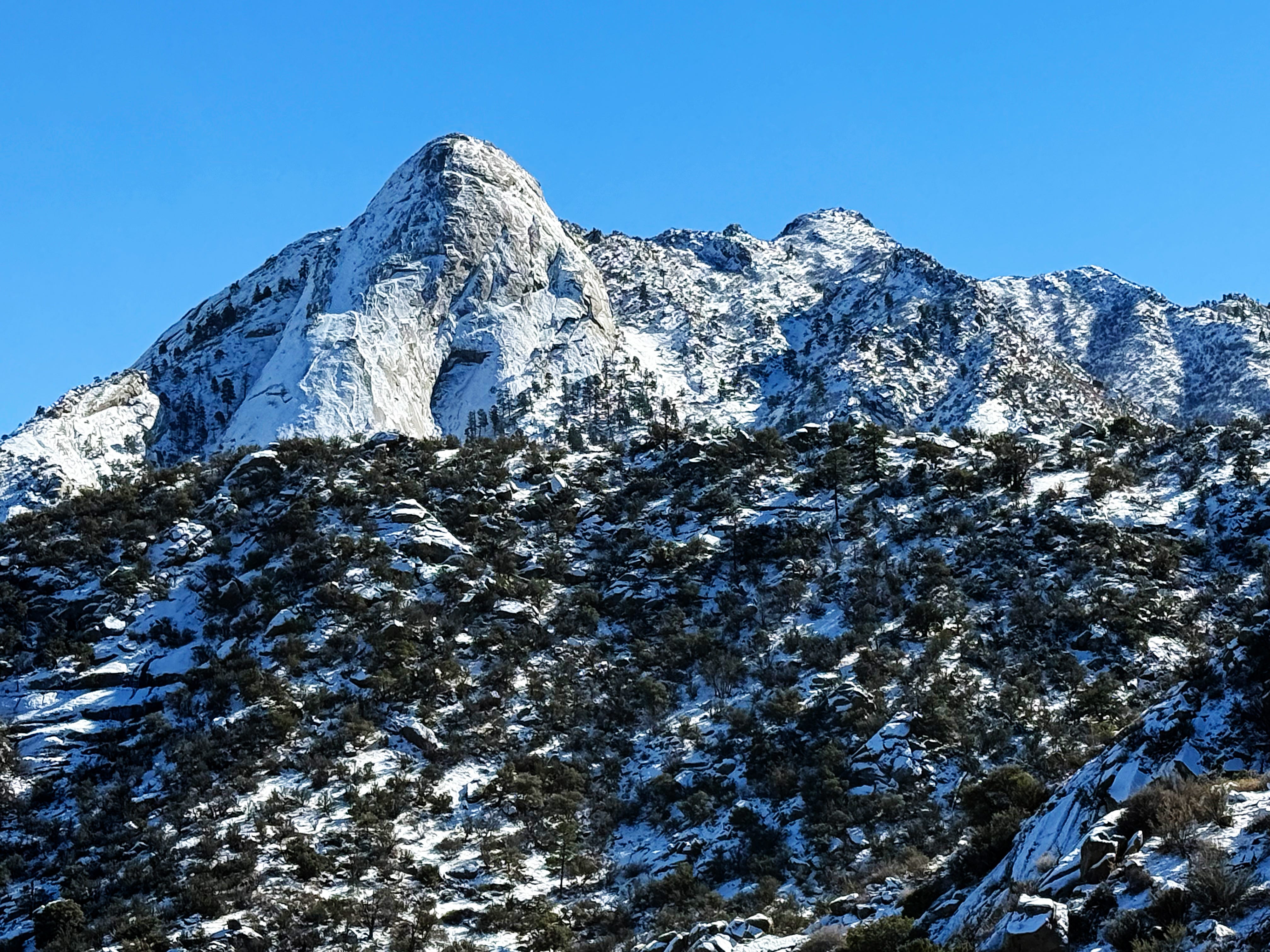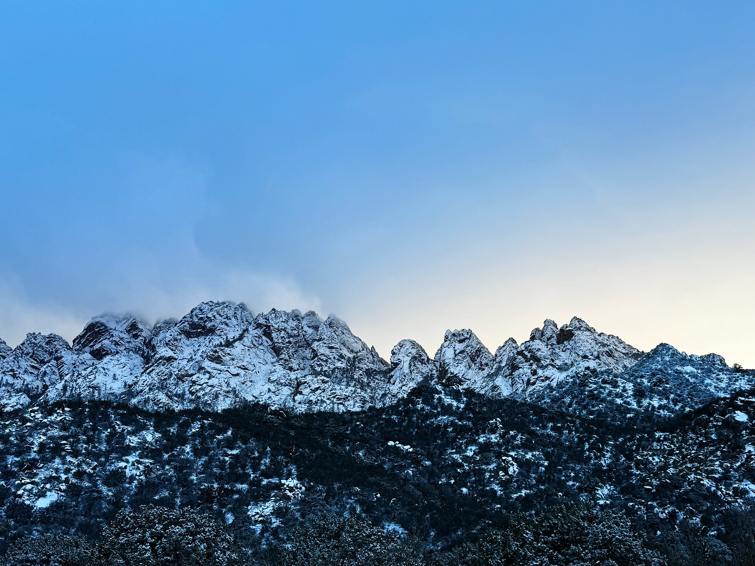 Jason did a bunch of research, and it looked like Aguirre Springs Campground in OMDP would get some snow — but not too much — so off we went.