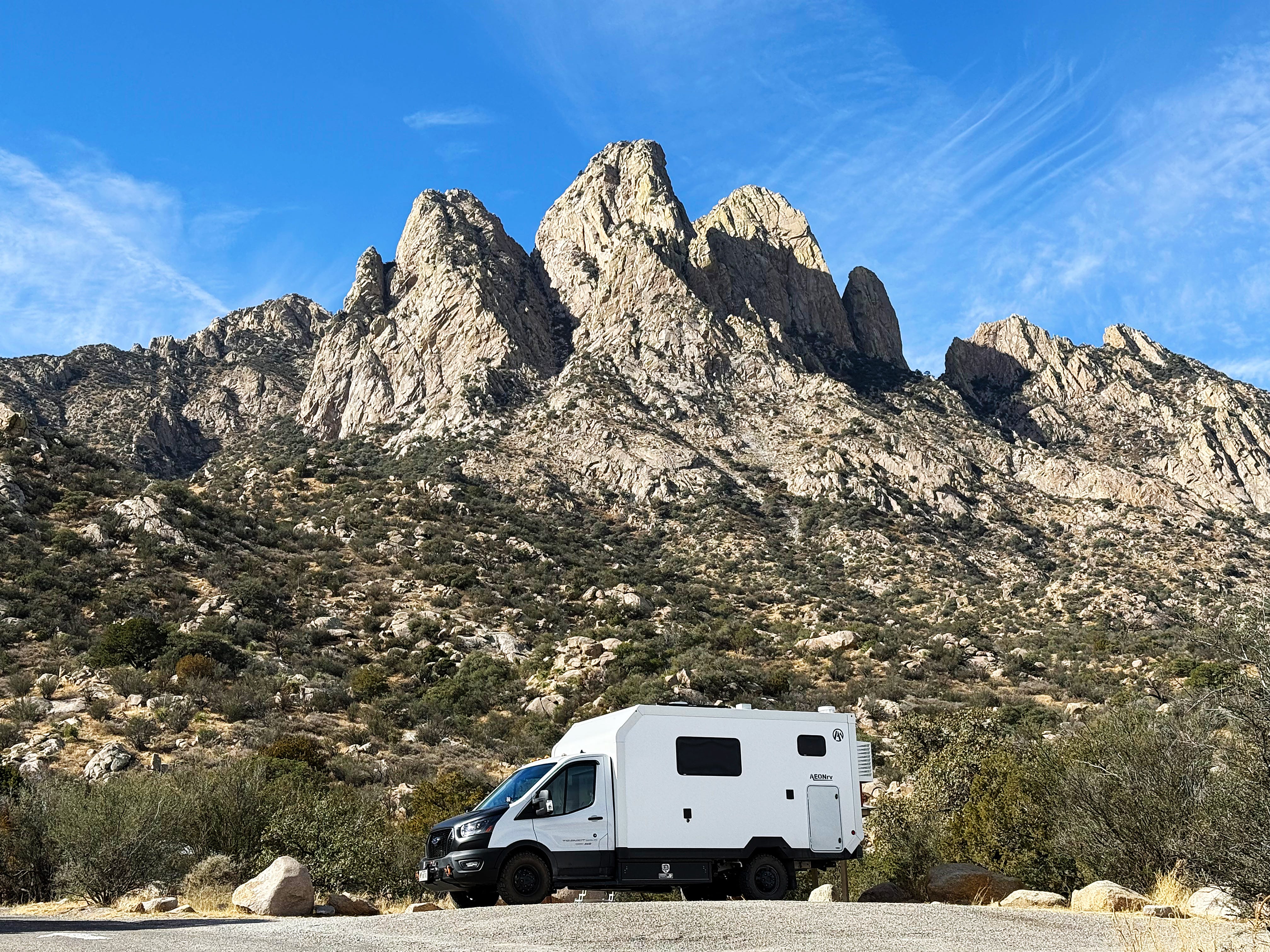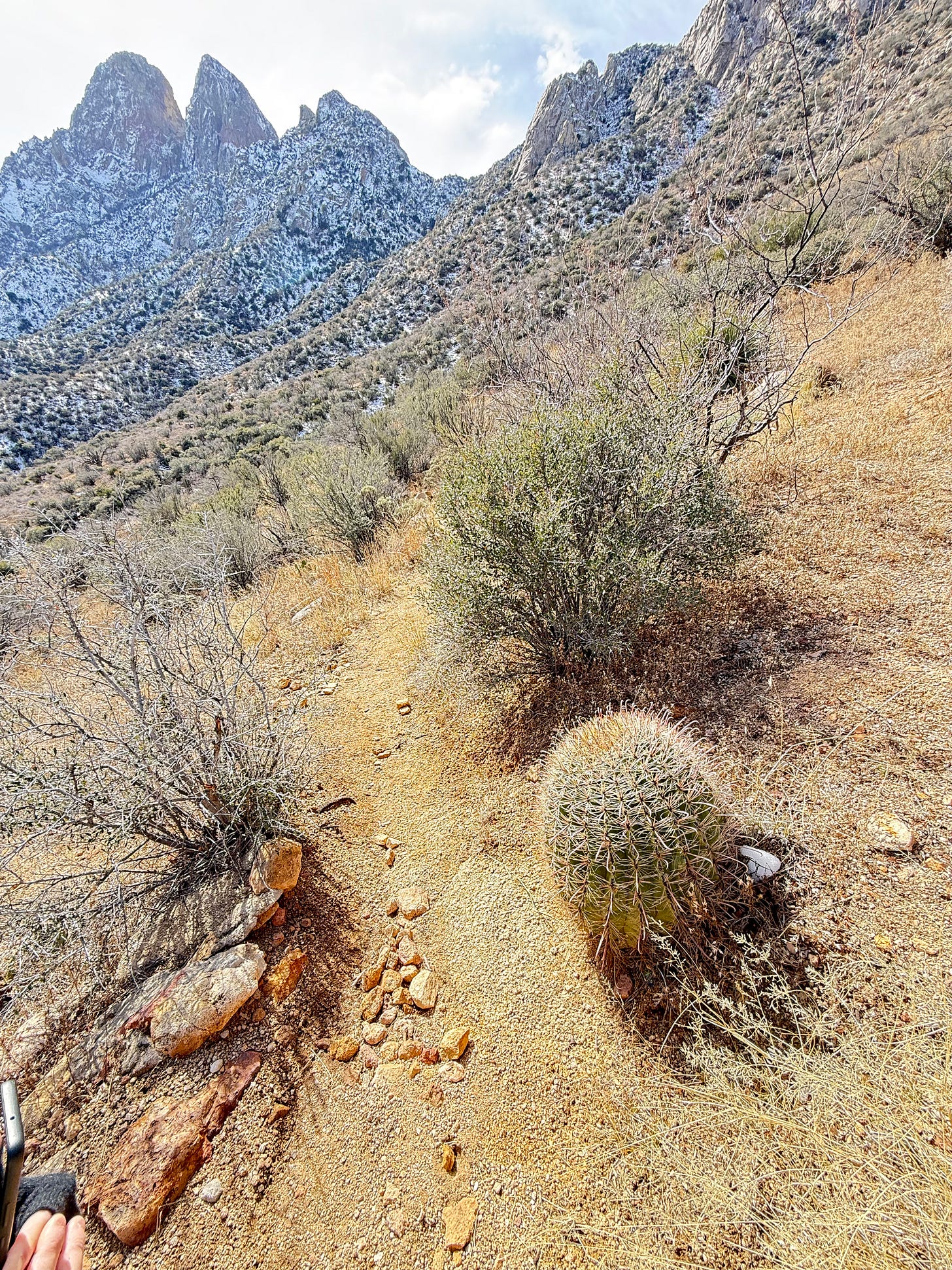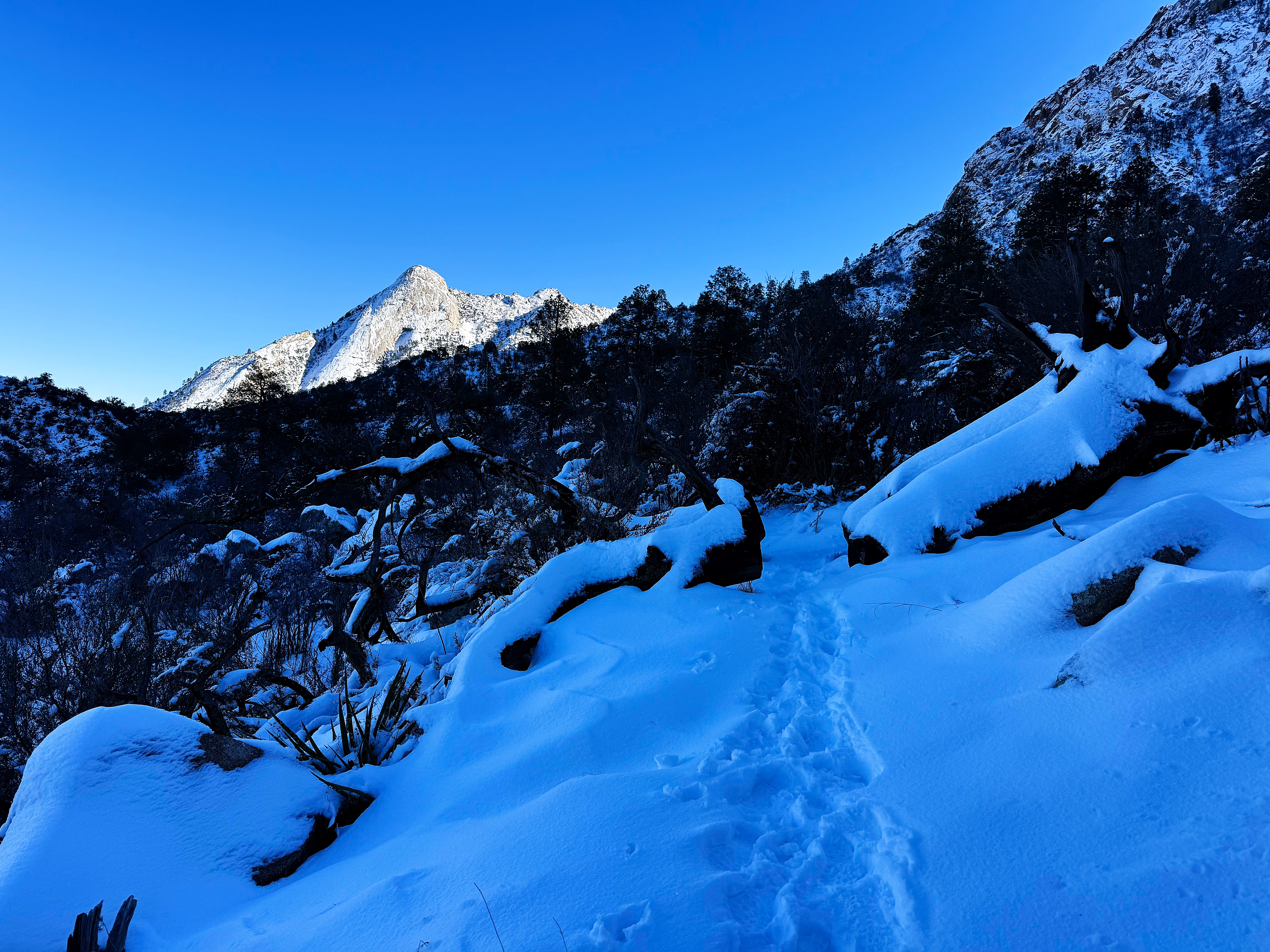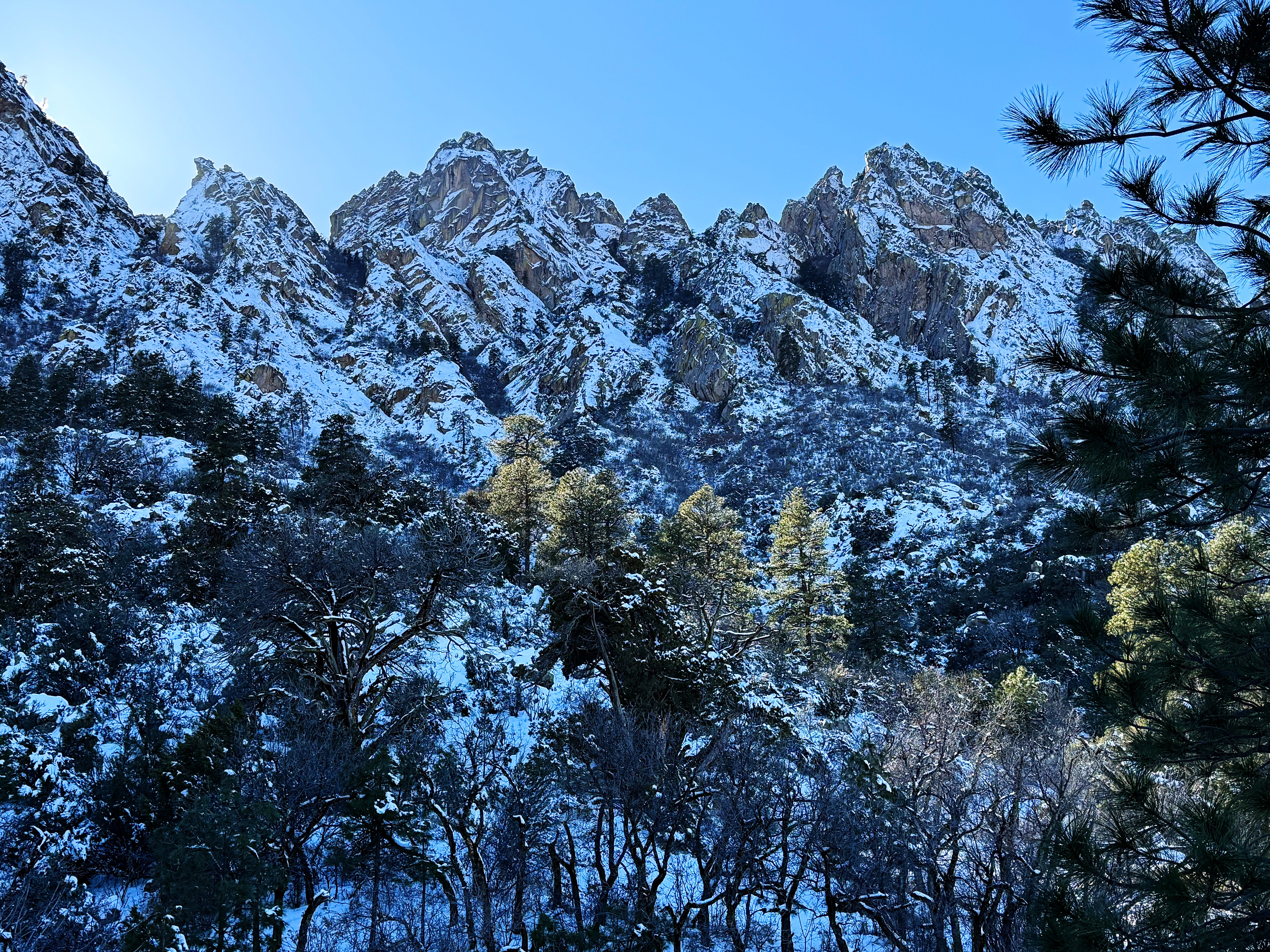 Jason did a bunch of research, and it looked like Aguirre Springs Campground in OMDP would get some snow — but not too much — so off we went.