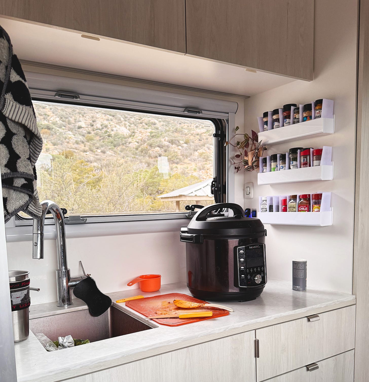 The next morning we headed for the campground and found a spot. I spent the day getting ready to be stuck in the van for a few days and did some batch cooking while we were still producing solar power, plus I organized my art supplies. (More on the art projects I did during the storm below!)