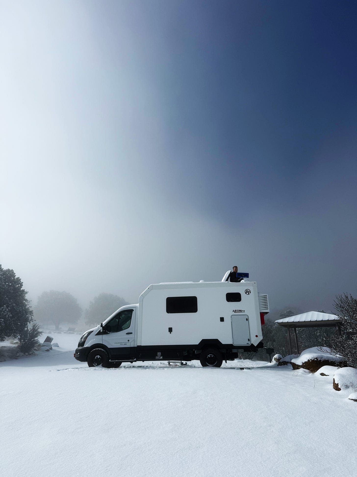 It got down in the 20’s here at OMDP but the AEONrv kept us toasty warm and cozy! We’re really enjoying the new van. We’ve come up with a new routine when nighttime temps are forecasted to go below freezing — we’ve been putting the heater on 68 before we go to bed, letting it run for a while, then turning it down to 55 — and the heater doesn’t even come on until morning! So impressive.