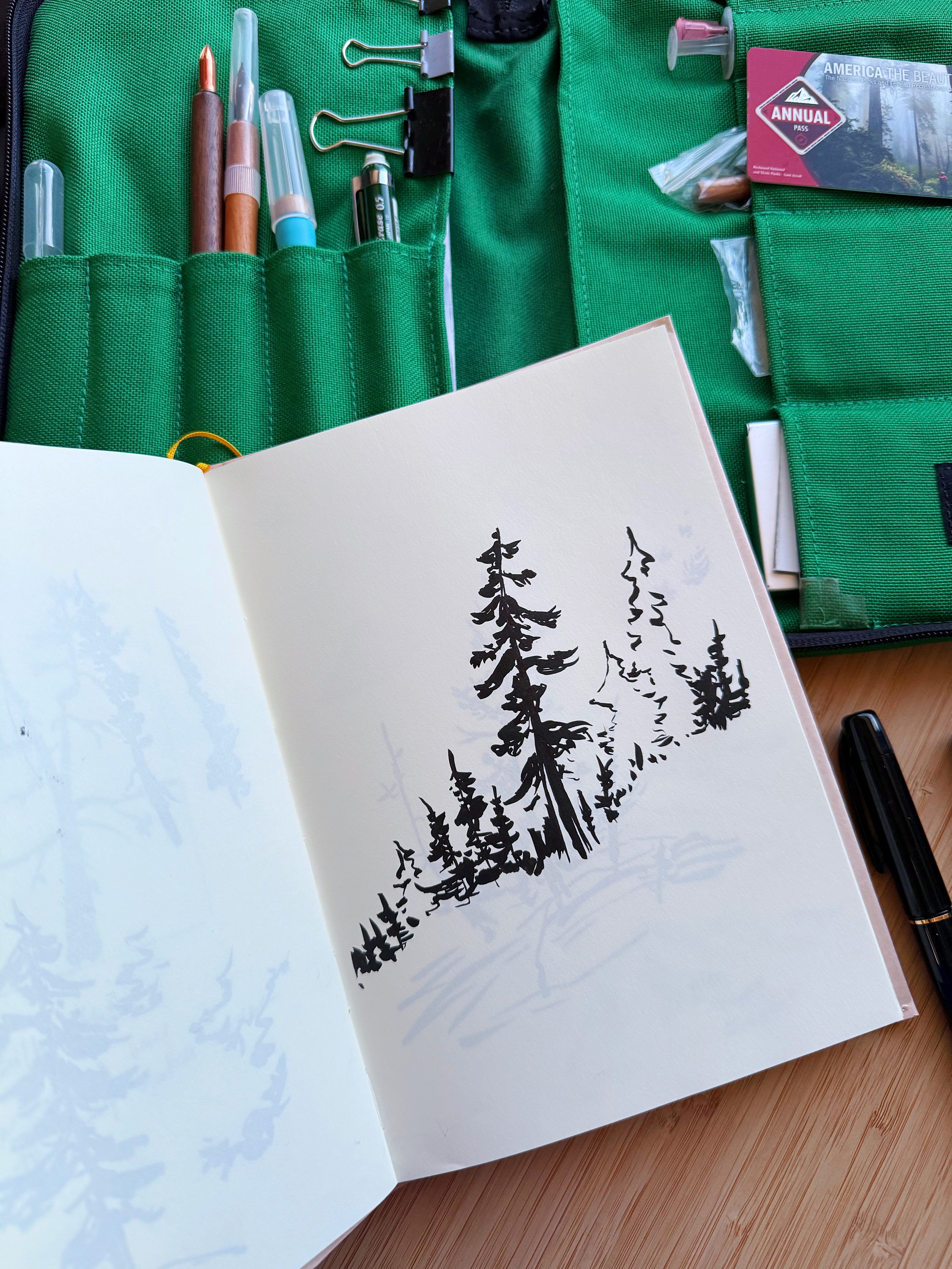 I’ve had an Art Toolkit set up just for ink sketching for a few years now — gotta stay organized when you live in a van, know what I mean? (If ever you’re in need of an Art Toolkit or palette, use code LISAFAN10 for 10% off!)