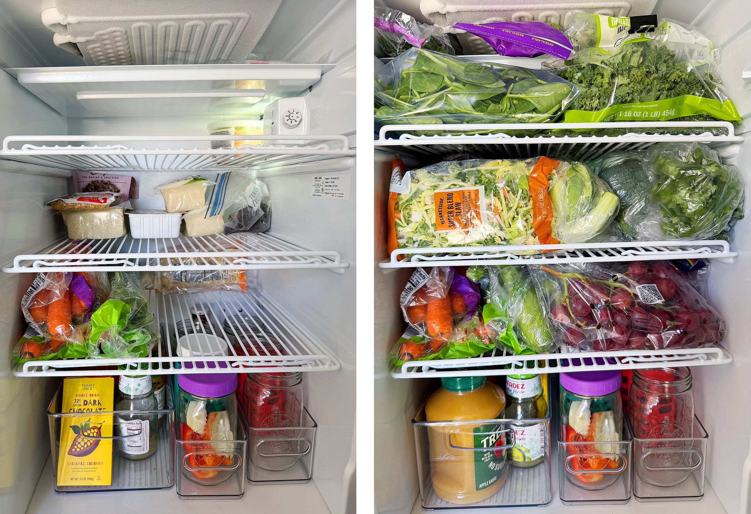 I thought this would be a good time to share before and after photos of the fridge since we’d almost eaten everything excpet our stash of tofu, ha!