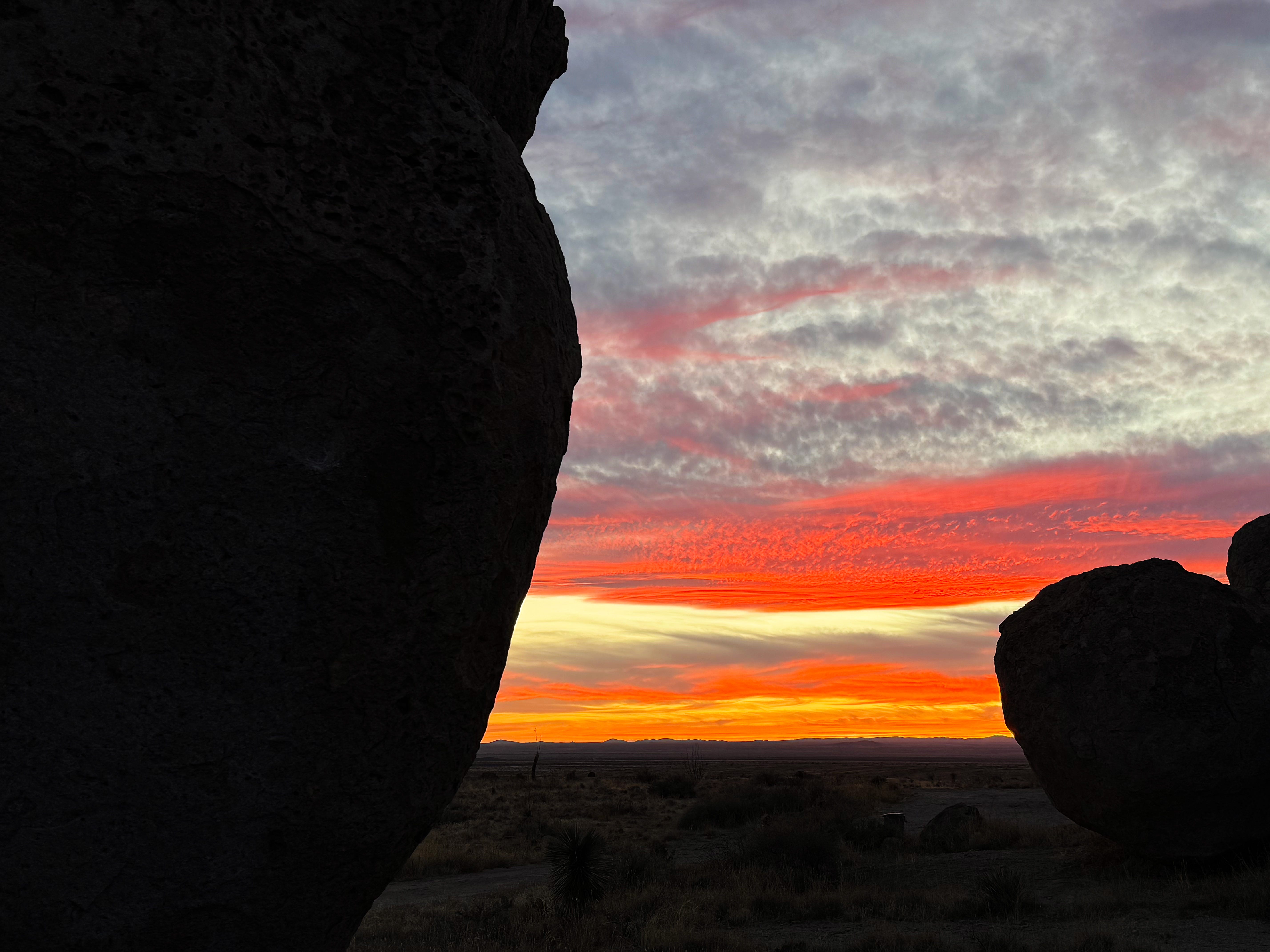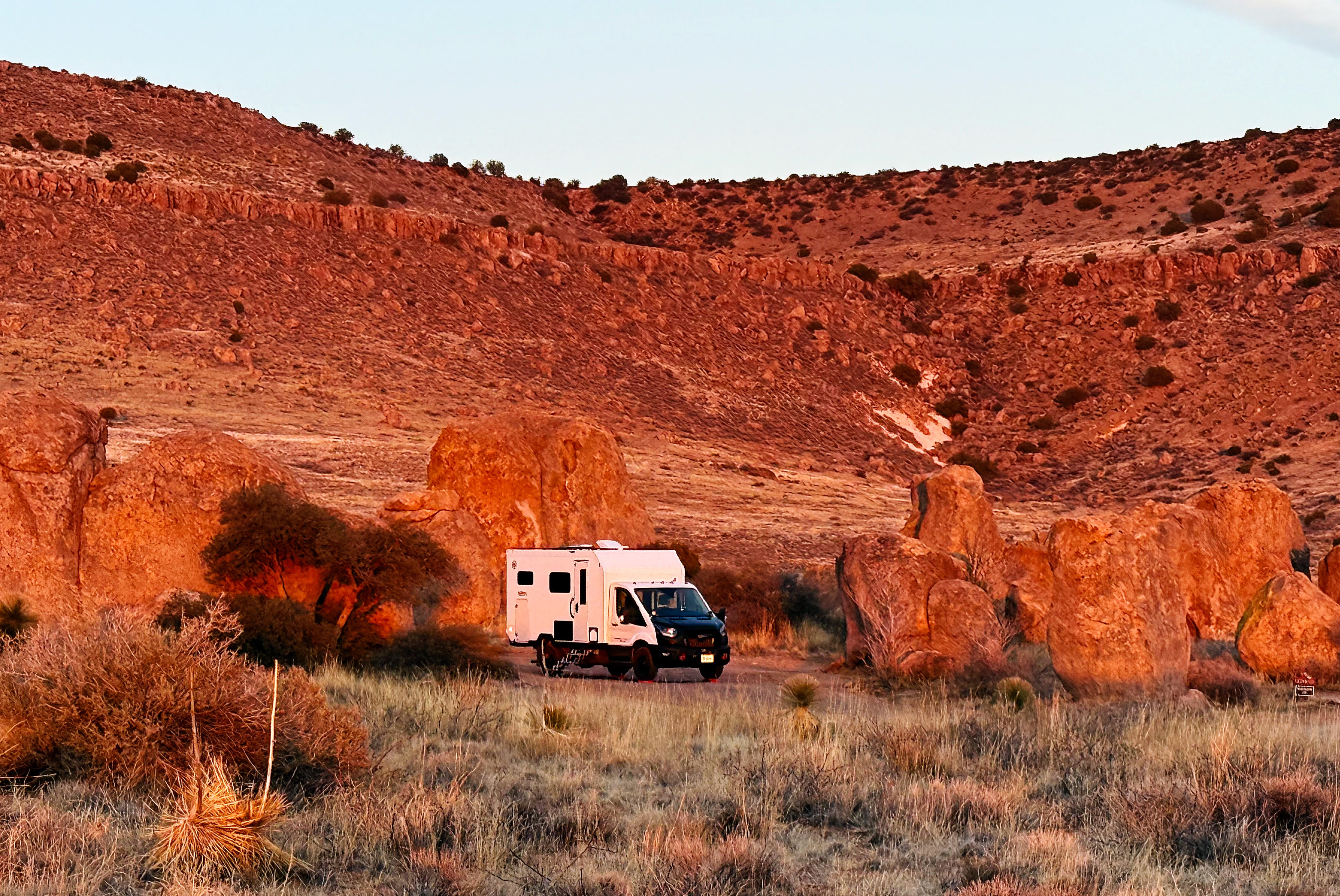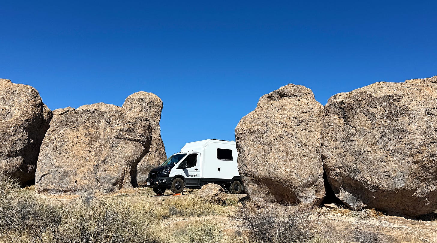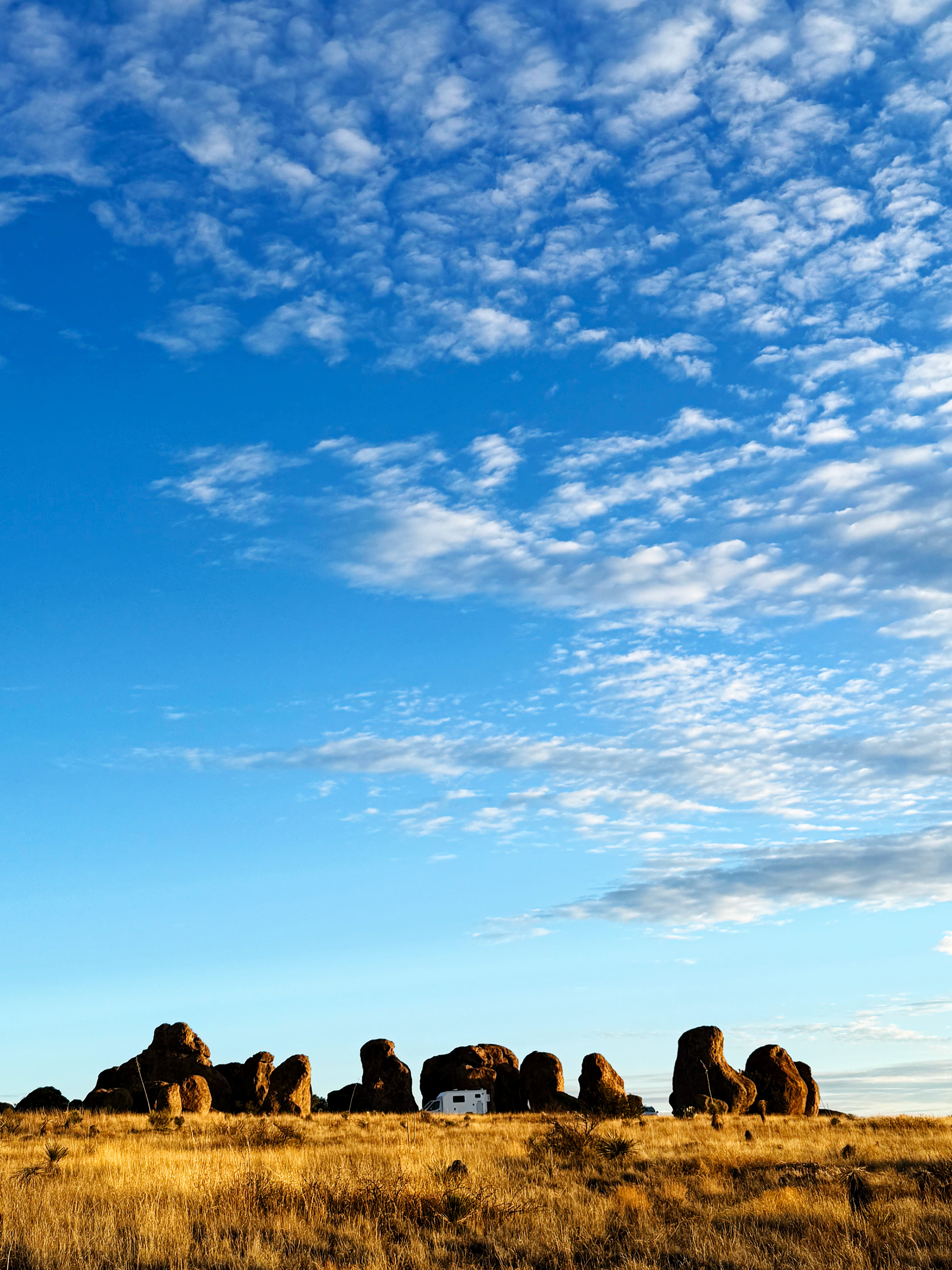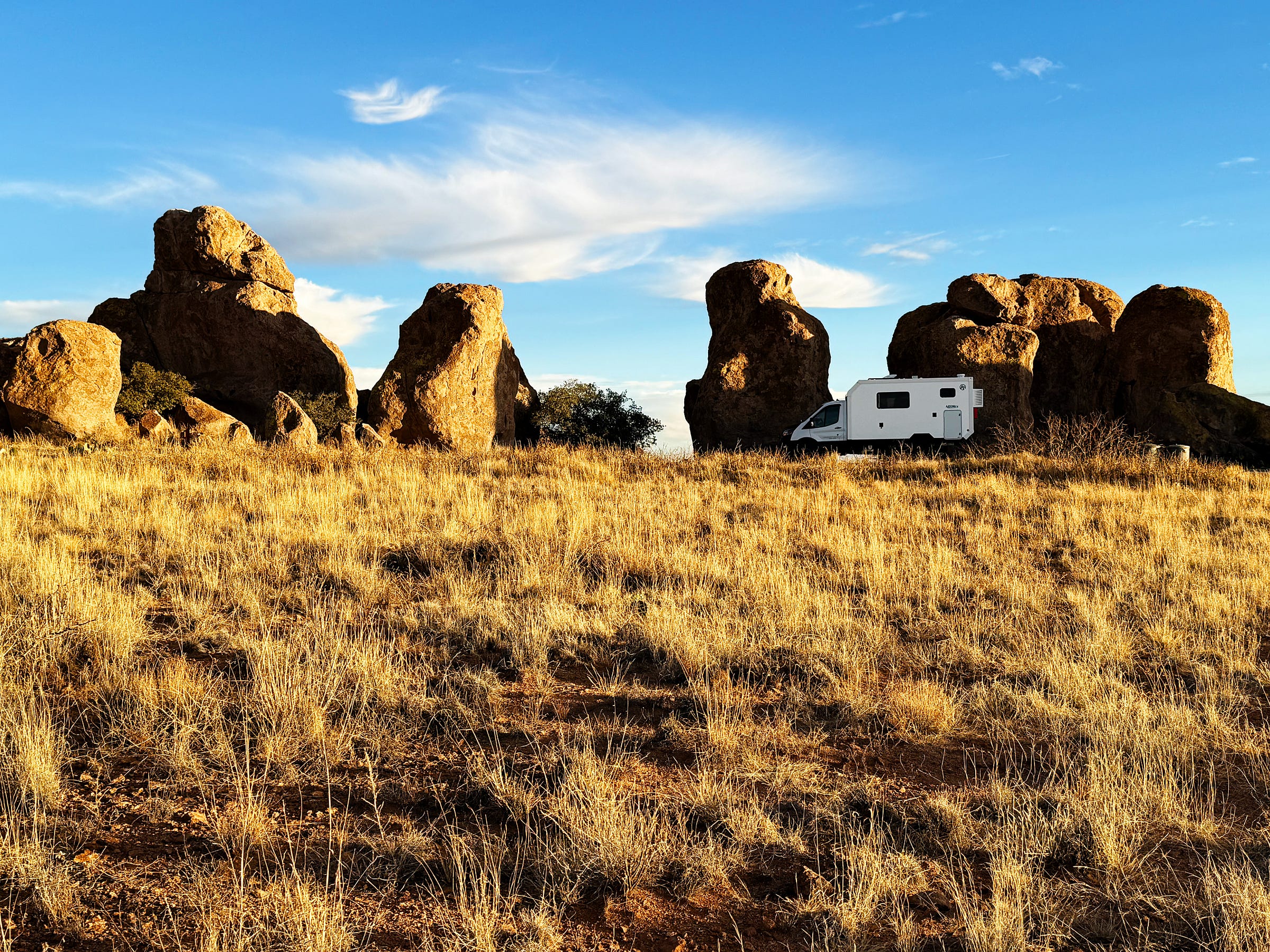 We had a hard time deciding where to go next — and finally set our sights on City of Rocks State Park, New Mexico. We’d camped here before way back in Week 25 in Walter the Van and loved it!