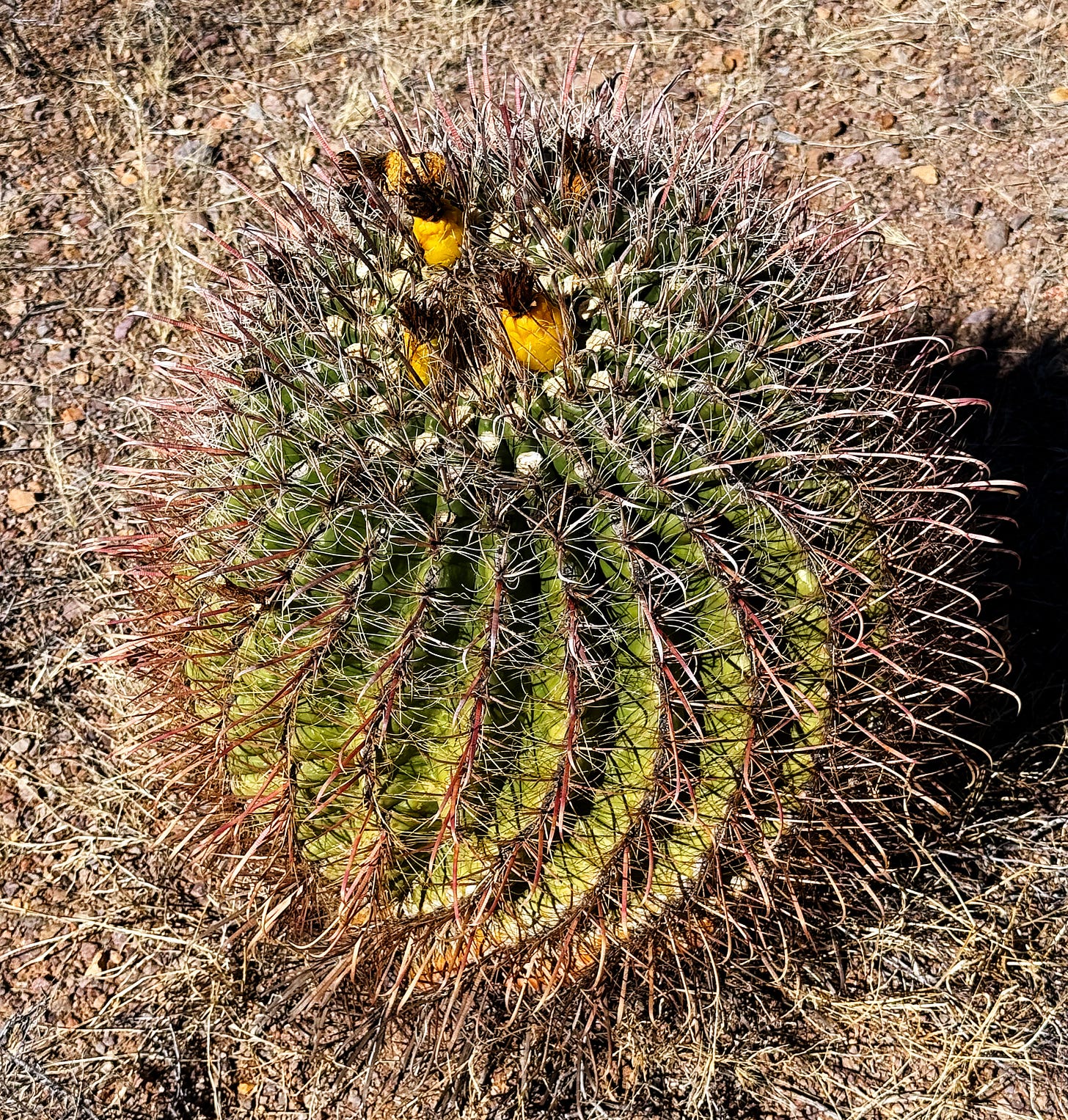 I think this was the most barrel cacti we’ve ever seen in one place! iNaturalist thinks they’re Fishhook Barrel Cacti (Ferocactus wislizeni) — we just thought they were super cool!