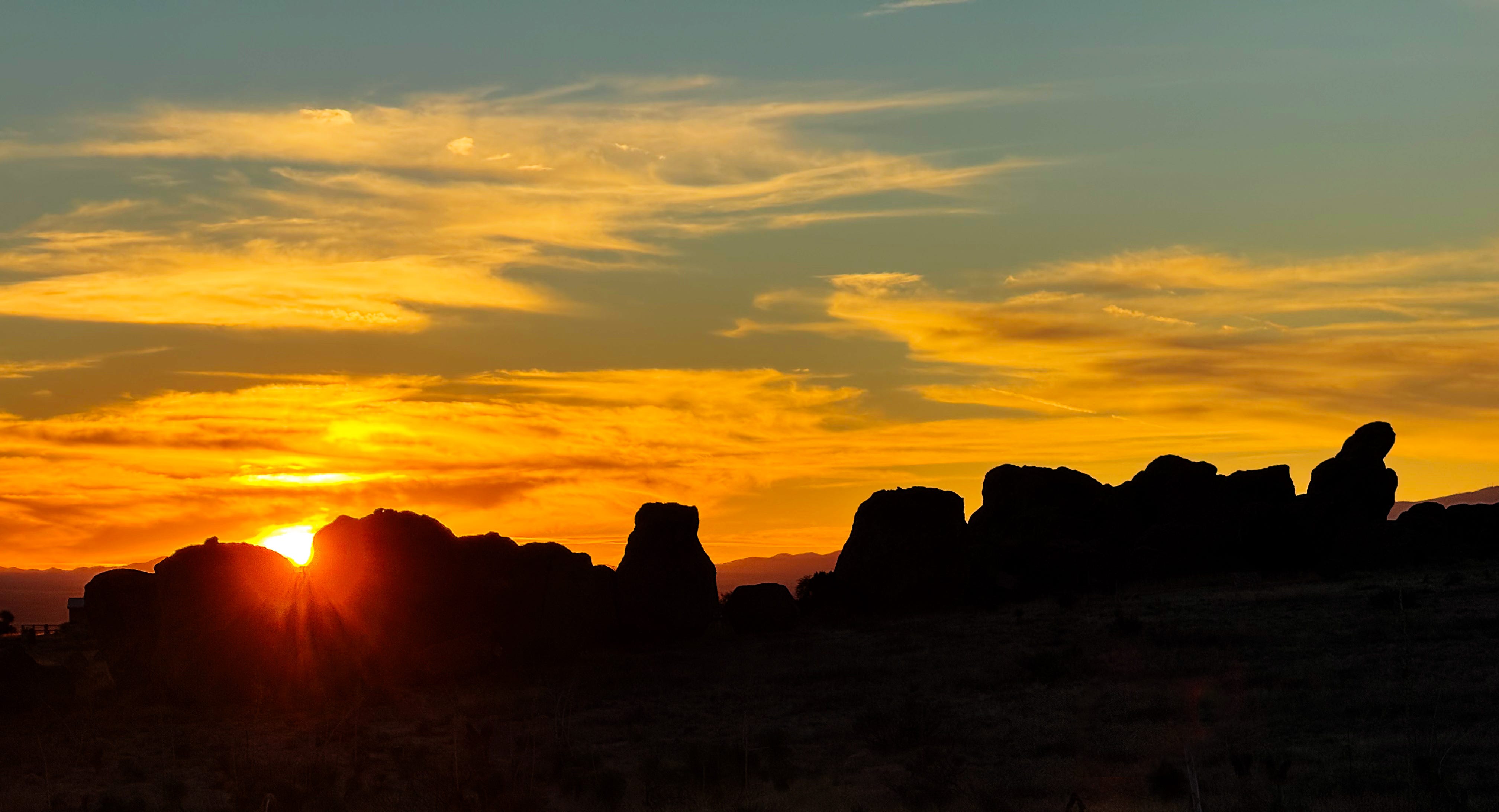 The park encompasses a one square mile area in the scenic Chihuahuan desert region of southwestern New Mexico at an elevation of 5,200 feet. The “city” is a geologic formation made up of large, sculptured rock columns, or pinnacles, rising as high as 40 feet and separated by paths or lanes resembling city streets. These rocks were formed about 34.9 million years ago when a very large volcano erupted. Then, erosion over millions of years slowly formed the sculptured columns seen today, creating a stunning, otherworldly landscape.