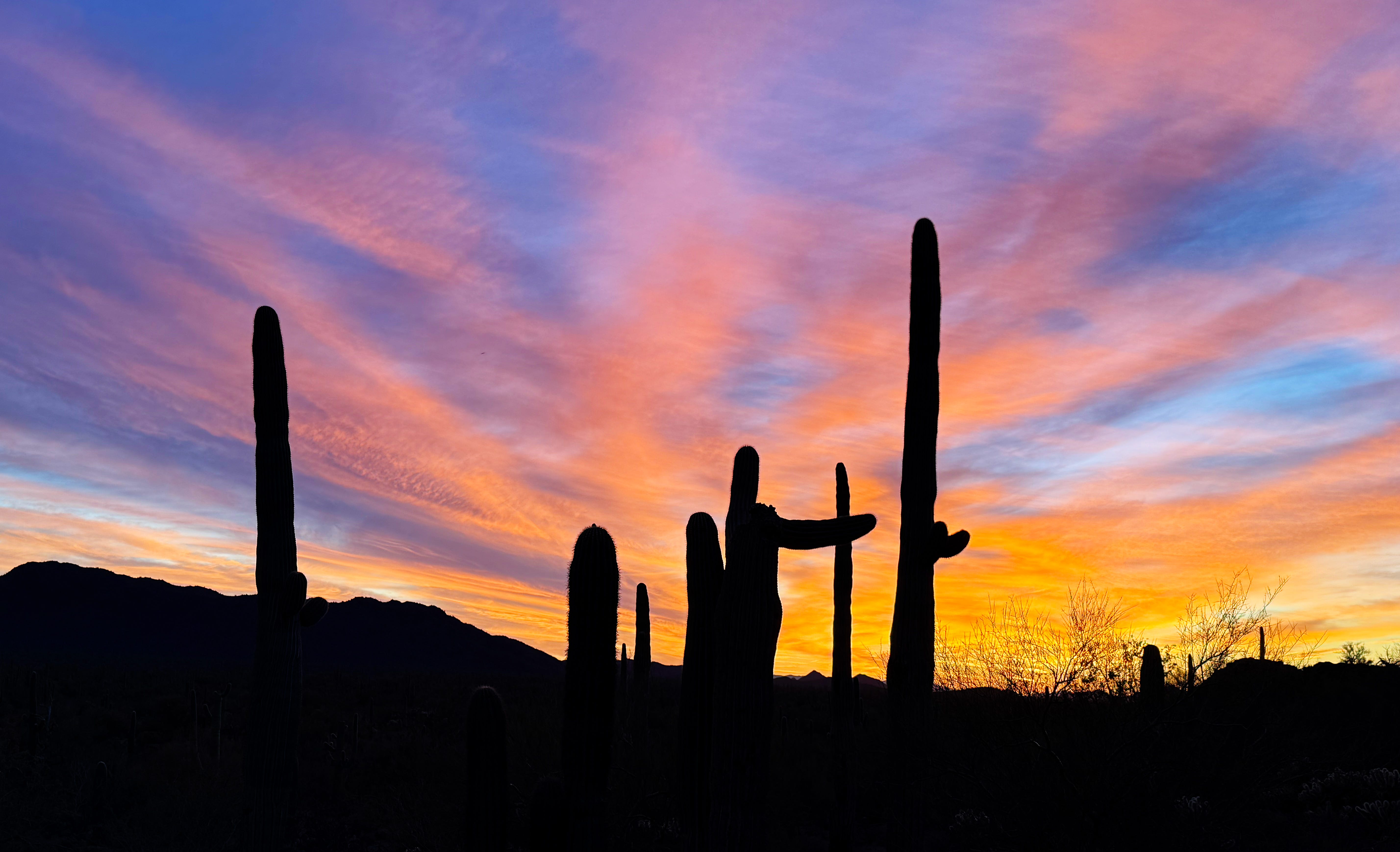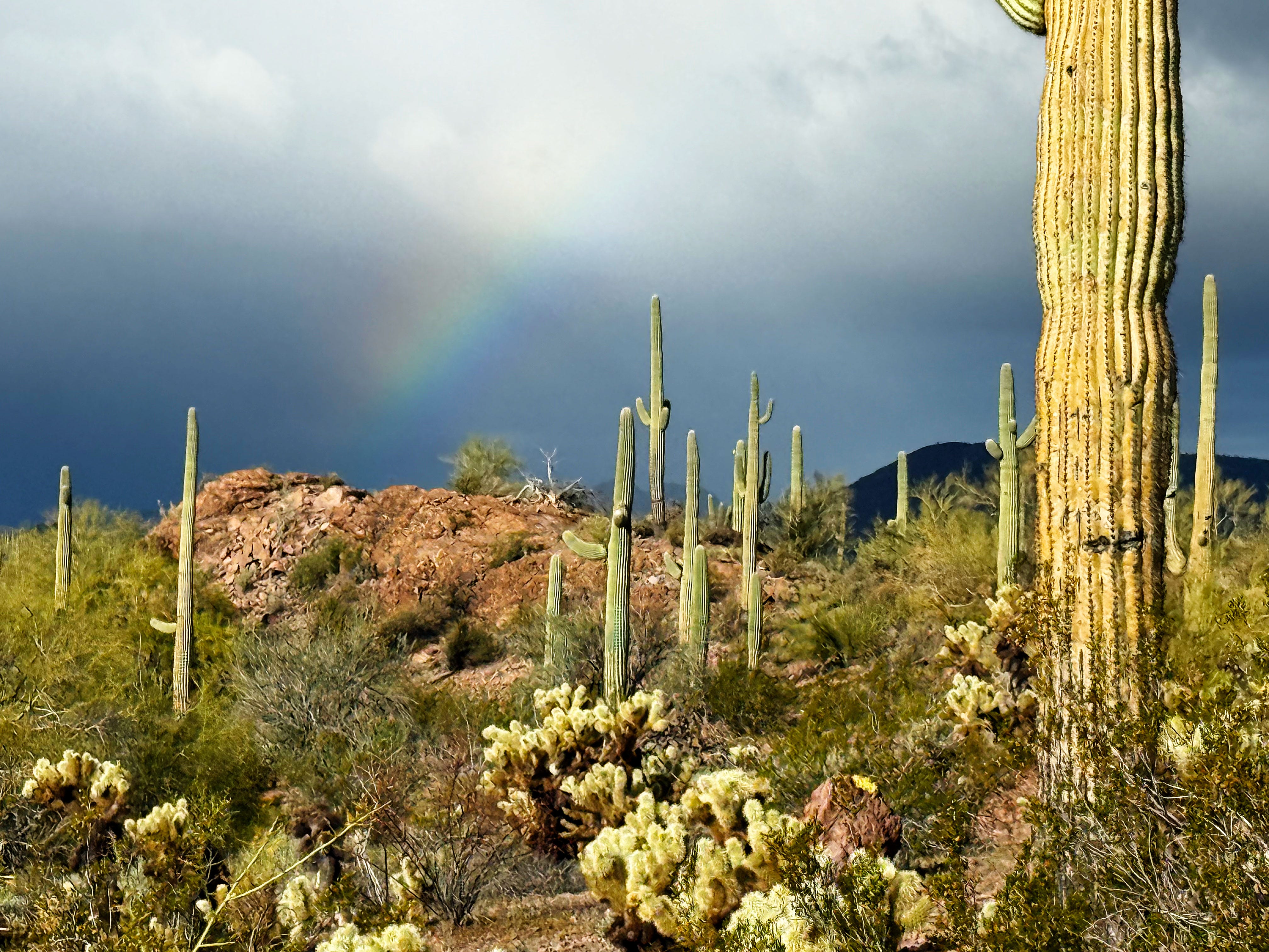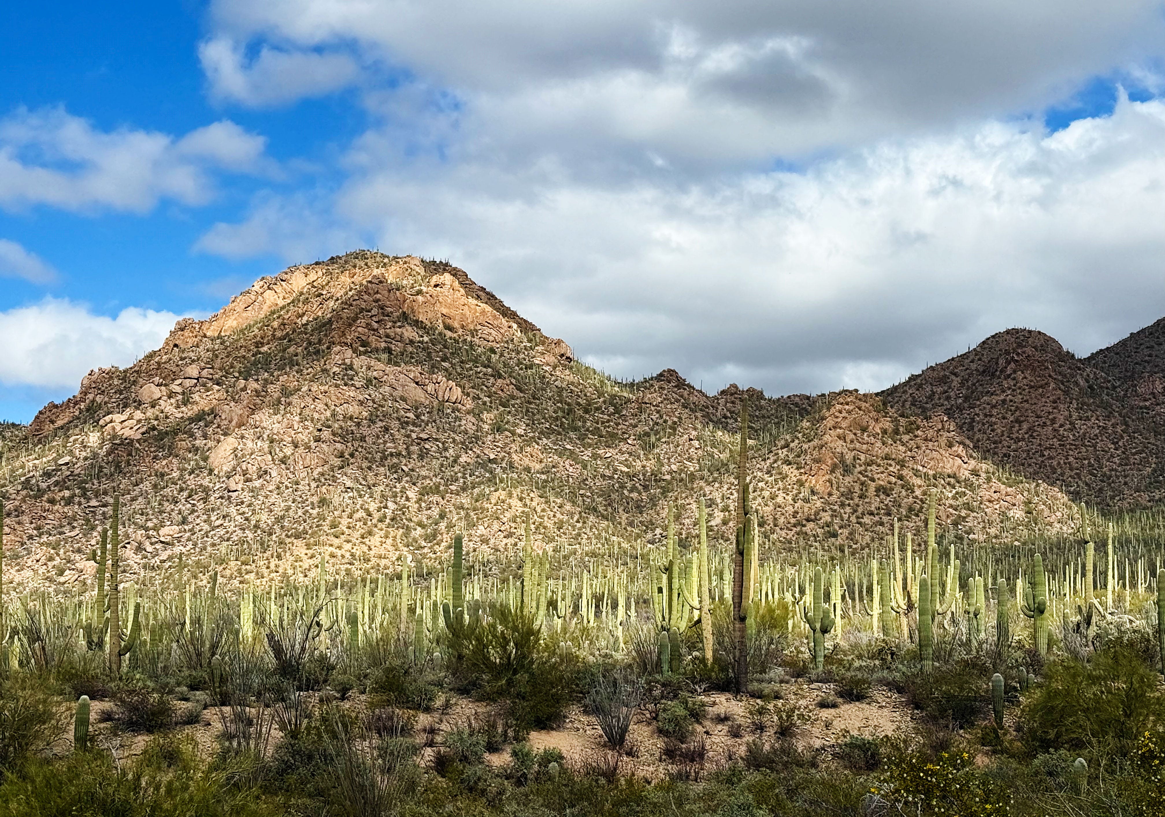 The campground is just down the road from Saguaro National Park so of course we had to stop on our way out. It had rained earlier that morning and it made for some dramatic lighting on the saguaros: